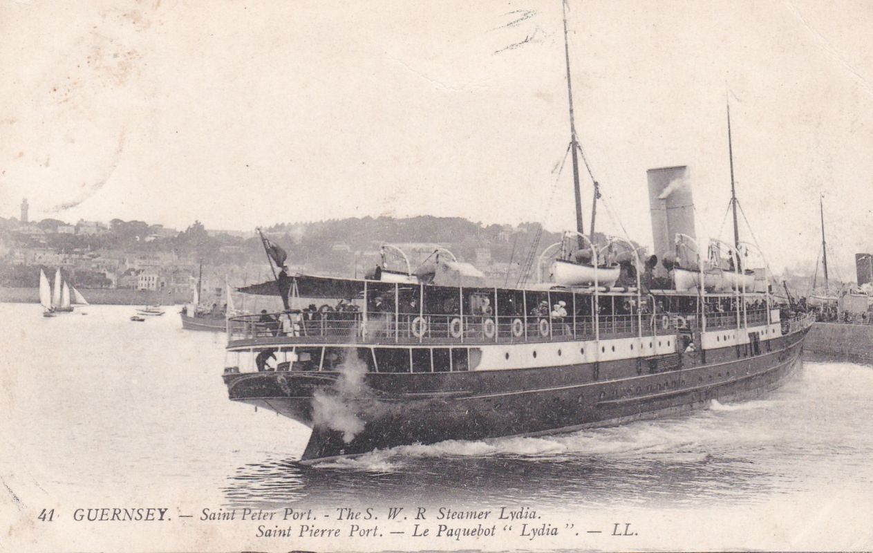 | 19 | GUERNSEY – LL card 040 - St. Peter Port. - The S. W. R – Steamer “Lydia”. Coloured. White back. Used. 4* | 20.00 | 20.00 | |