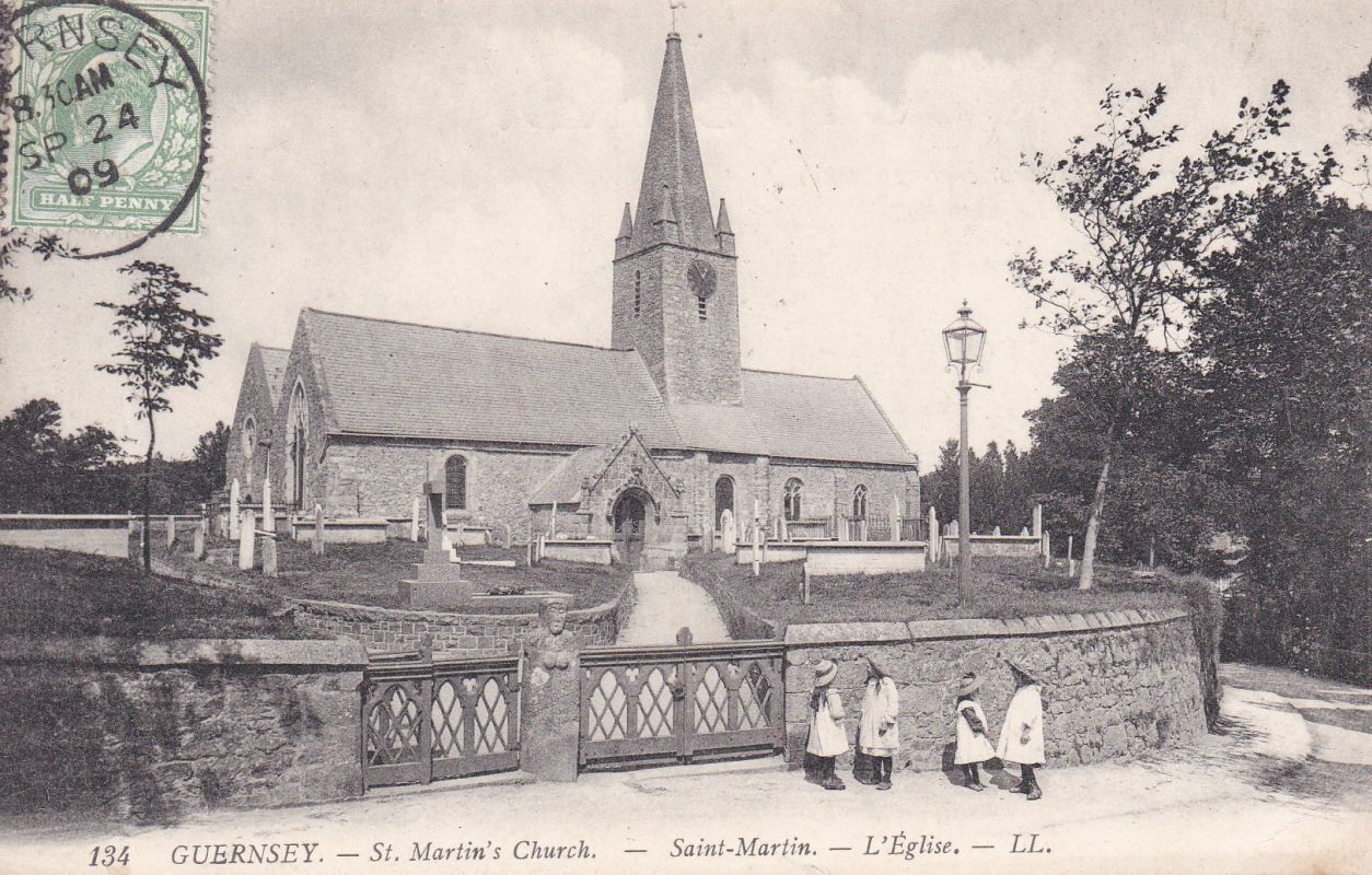 | 64 | GUERNSEY – LL card 134 - St. Martin’s Church. B/W. Green back. Used. Stamp on front. Slight corner crease. 3* | 10.00 | 10.00 | |