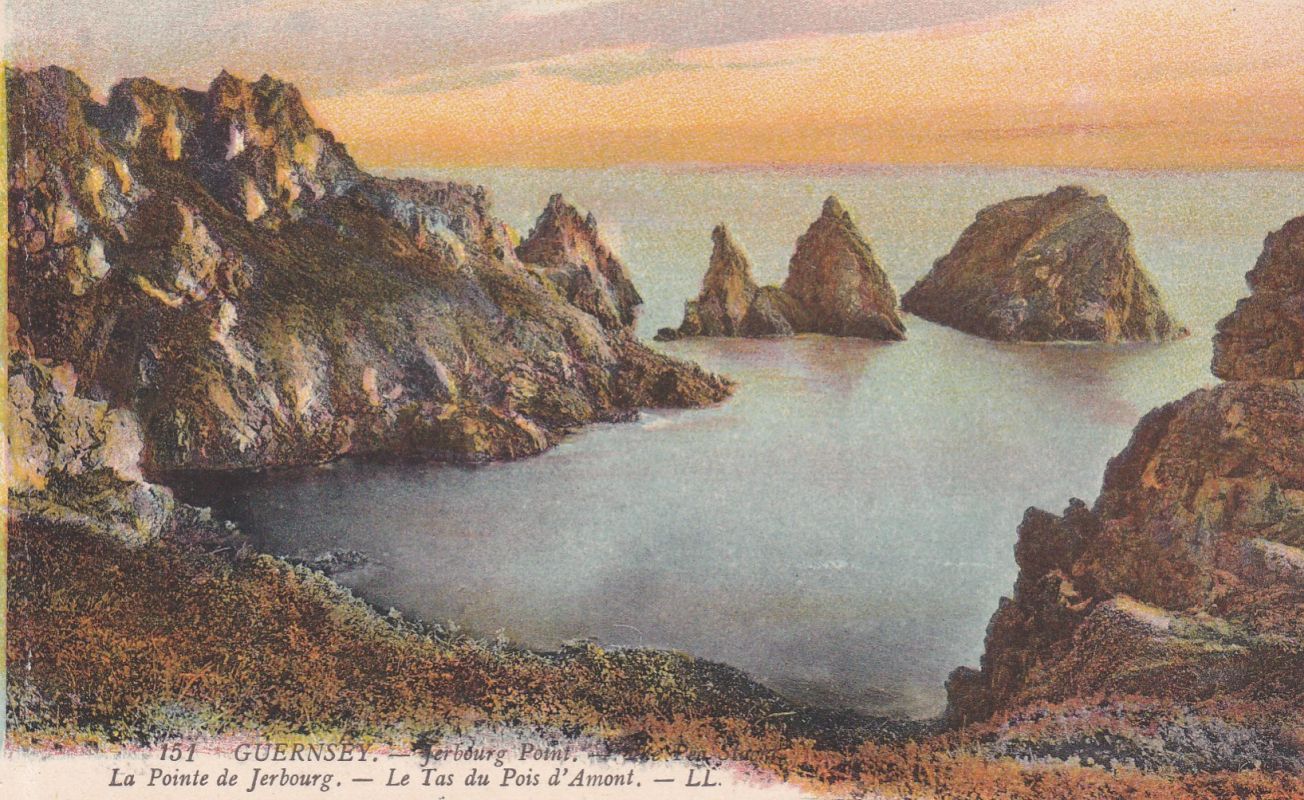 | 72 | GUERNSEY – LL card 151 - Jerbourg Point. - The Pea Stackl. Error of spelling. Coloured. White back. No space or address titles. Unused. 3* | 20.00 | | |