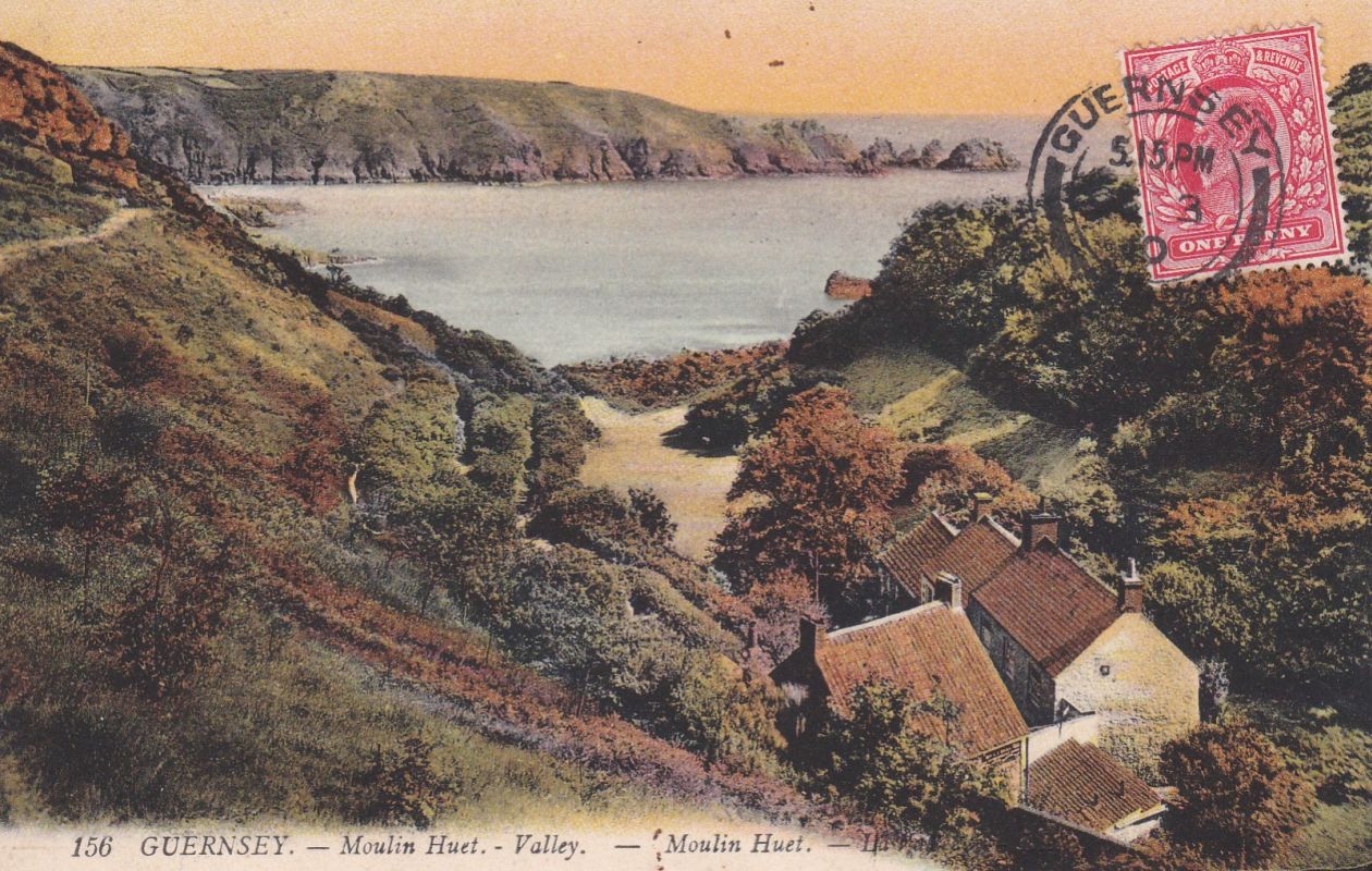 | 73 | GUERNSEY – LL card 156 - Moulin Huet. - Valley. Coloured. White back. Used. Stamp on front. 2* | 6.00 | | |