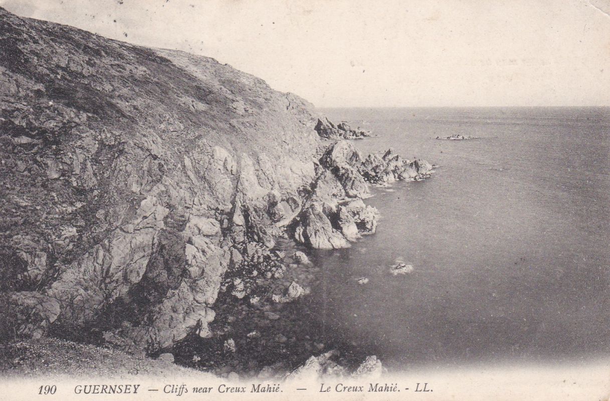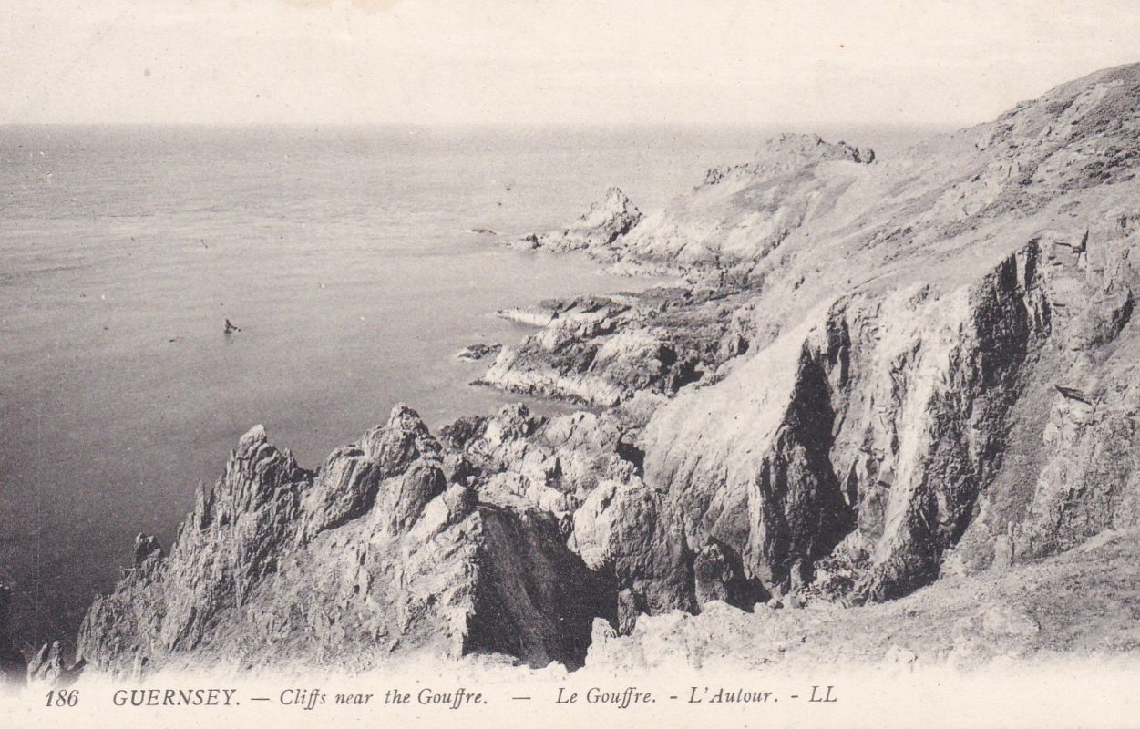 | 90 | GUERNSEY – LL card 186 - Cliffs near the Gouffre. B/W. Green back. Unused. Small tear at top. Scarce.3* | 5.00 | 12.00 | |