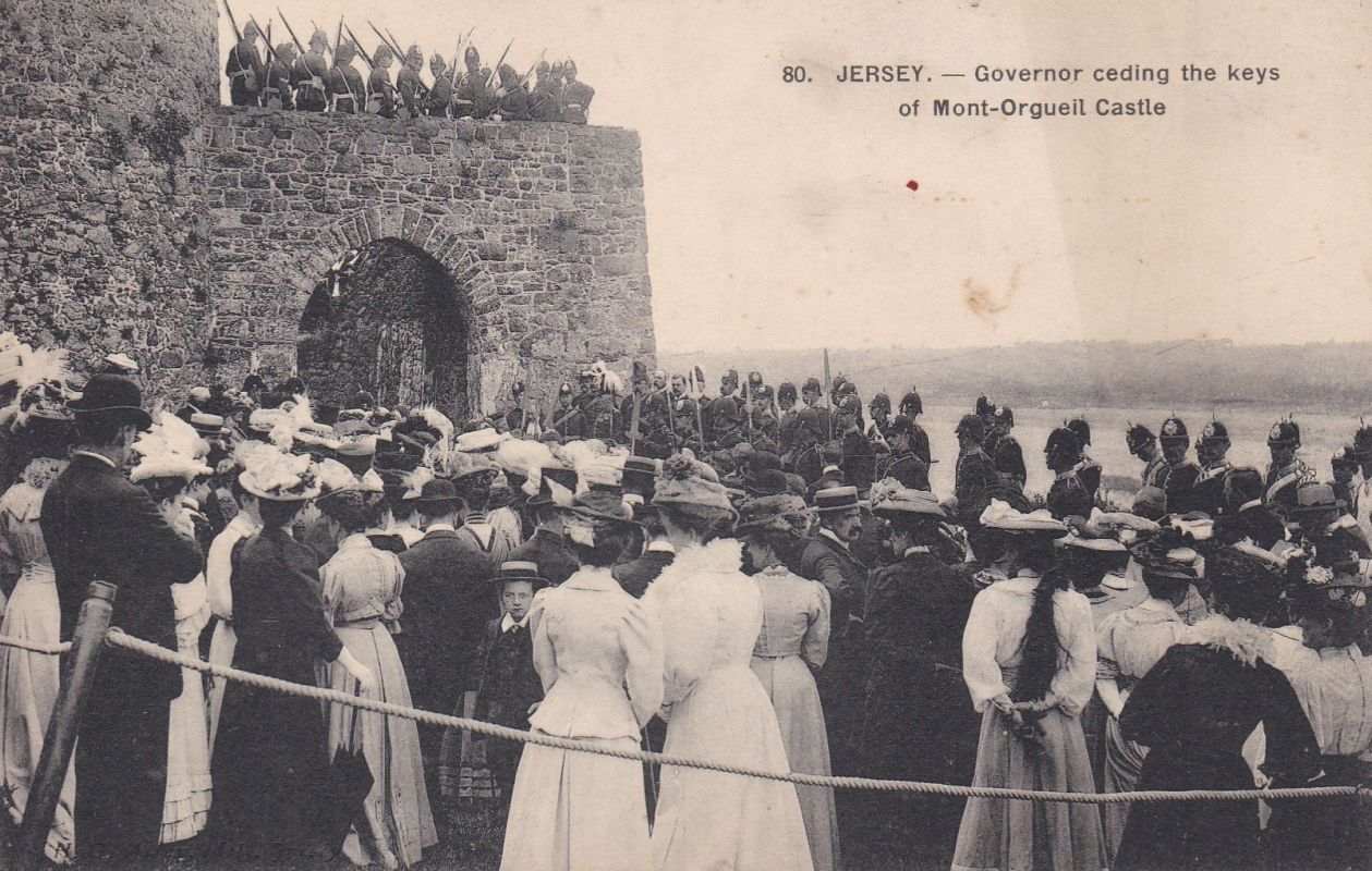 | 280 | JERSEY - Allix card - 076 Handing over the keys Mont-Orgueil Castle. B/W Unused. Writing in pencil on back. Not posted | 20.00 | | |