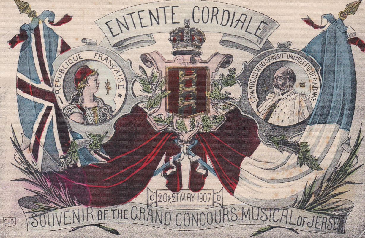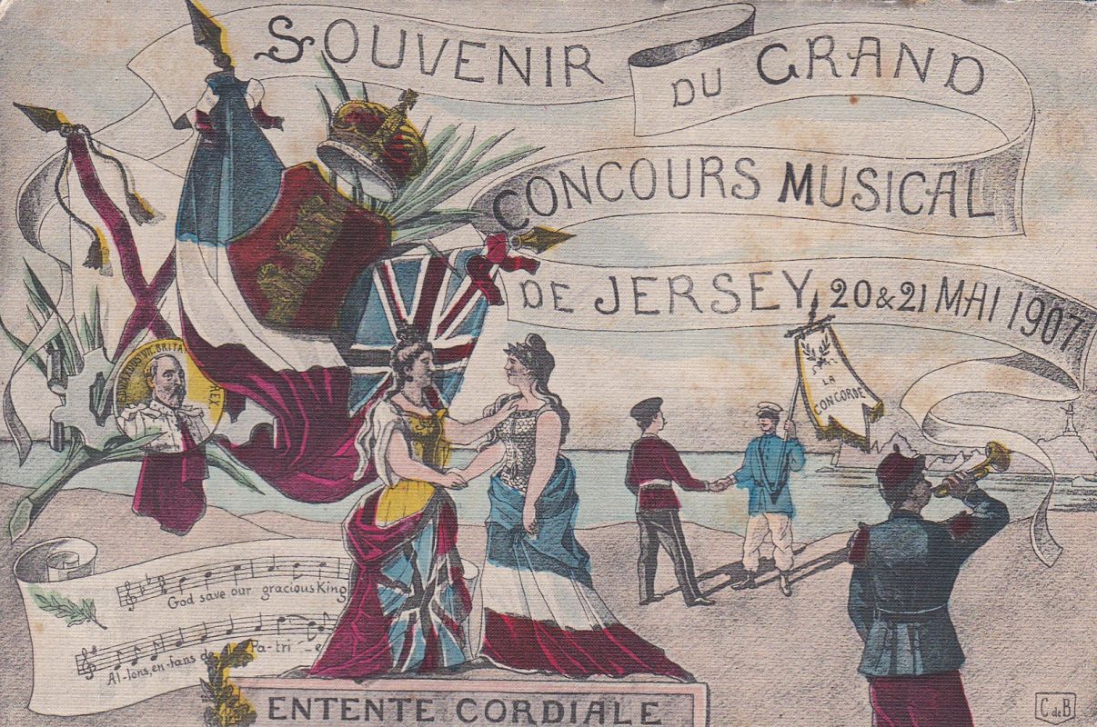 | 340 | JERSEY - Allix card - Entente Cordiale - Souvenir of the Grand Concours Musical of Jersey 20 & 21 May 1907 Coloured. Unused, | 30.00 | | |