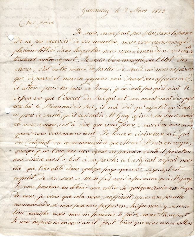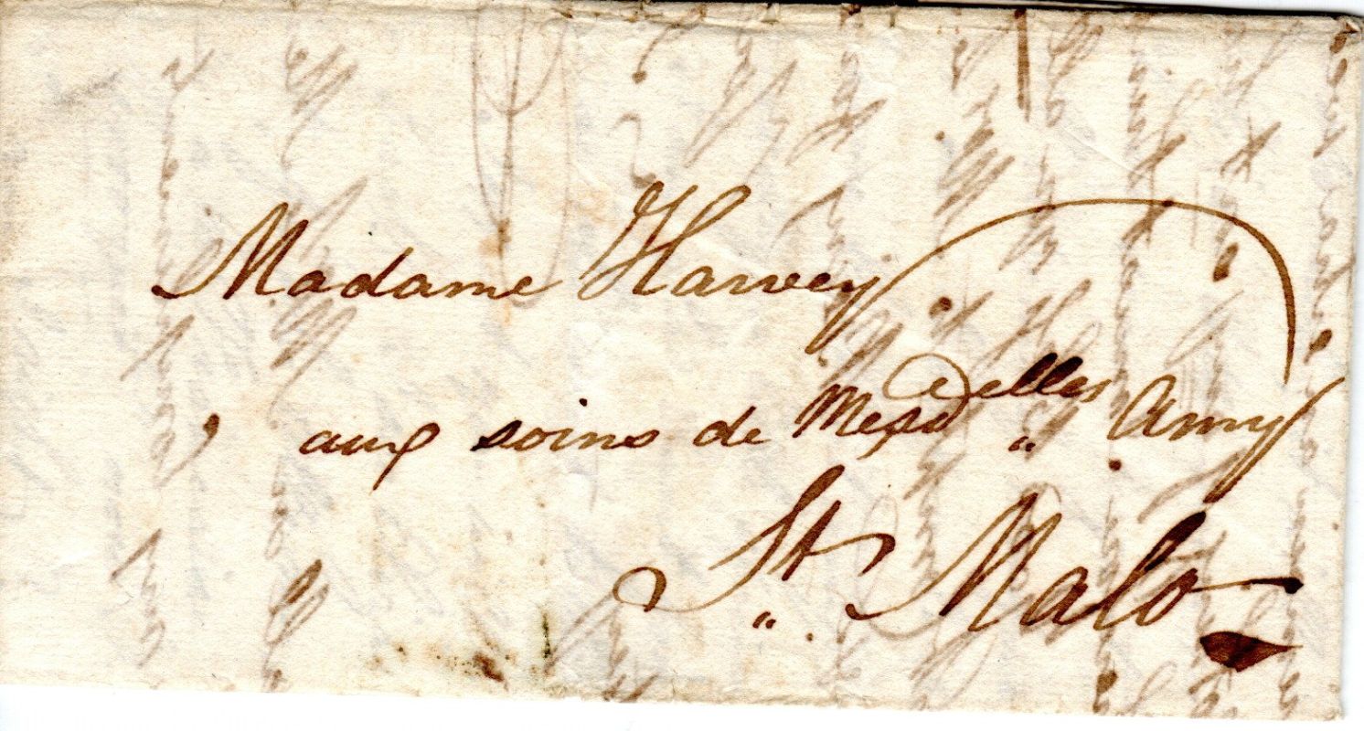 | 3 | GUERNSEY - 1816 Letter sent by private carrier from Guernsey to Madame Harvey at St. Malo, France requesting her to return to Guernsey with poultry, turkeys and peacocks. | 6.00 | 6.00 | |