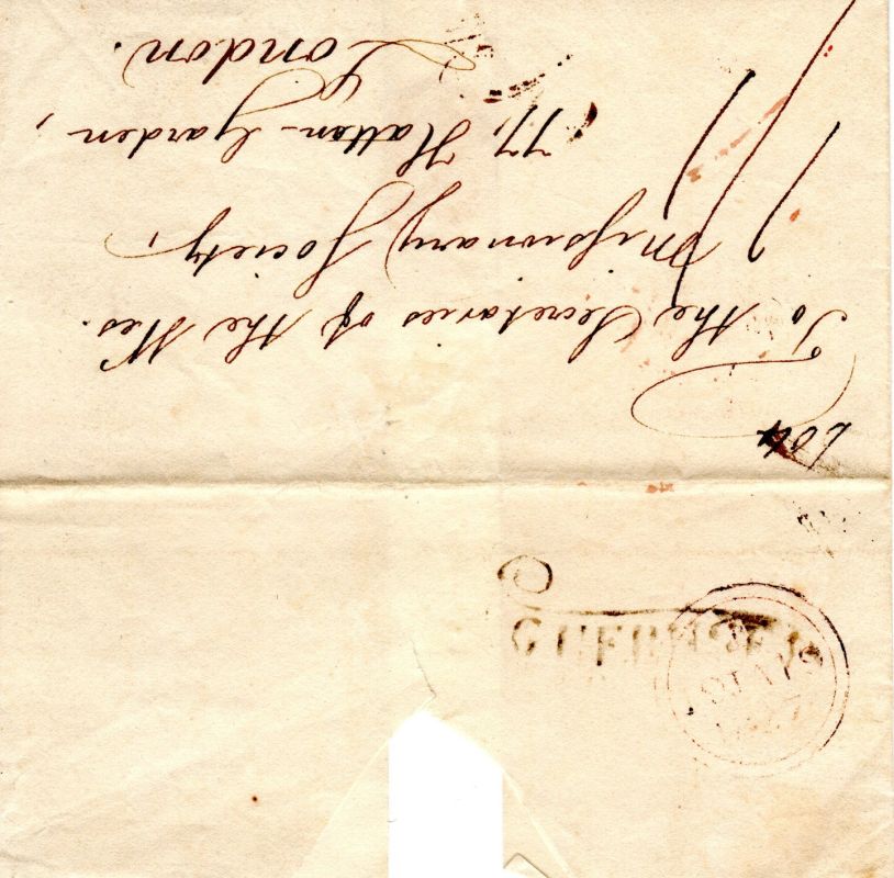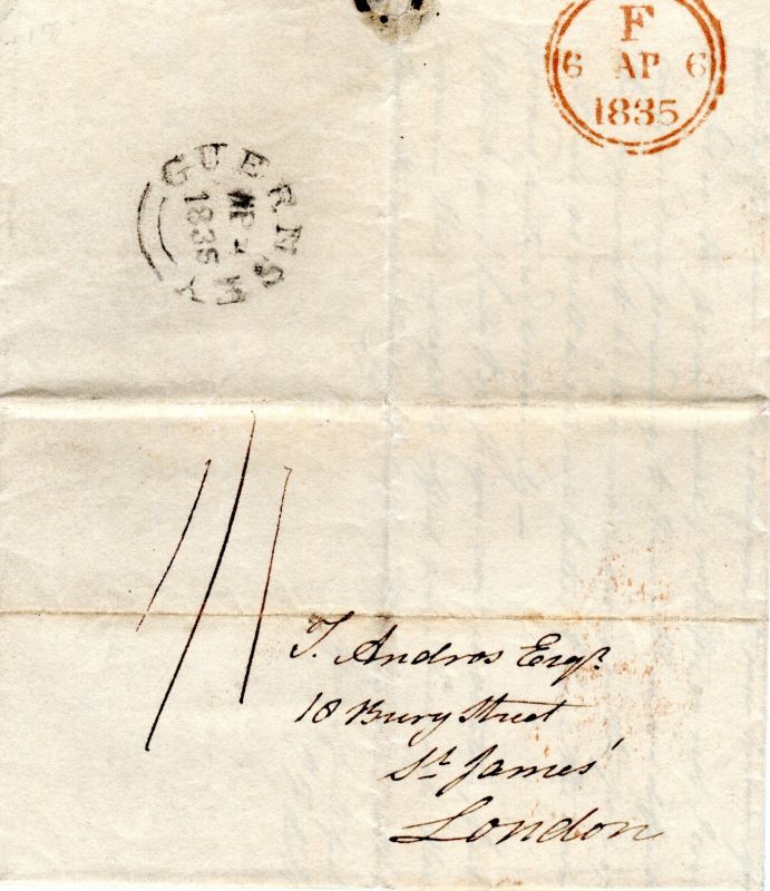 | 9 | GUERNSEY - 1835 entire letter to London from Guernsey rated 1/1d with the first dated double arc for AP 5 1835 and red London arrival mark. | 20.00 | 18.00 | |