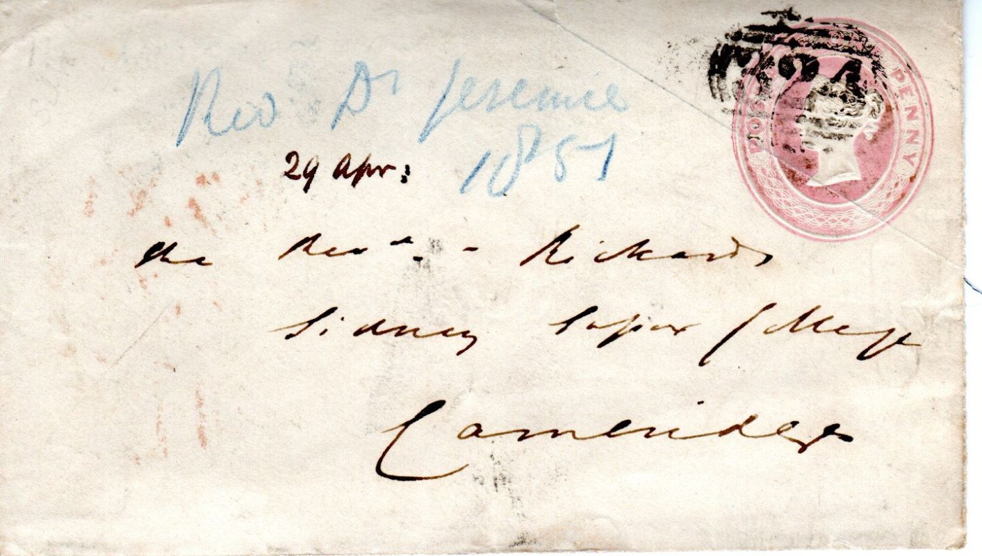 | 15 | GUERNSEY - 1851 1d Pink envelope to Cambridge cancelled by a Guernsey 324 numeral with, on the reverse, a good Guernsey dated double arc for AP 30 1851 in blue. | 20.00 | 18.00 | |