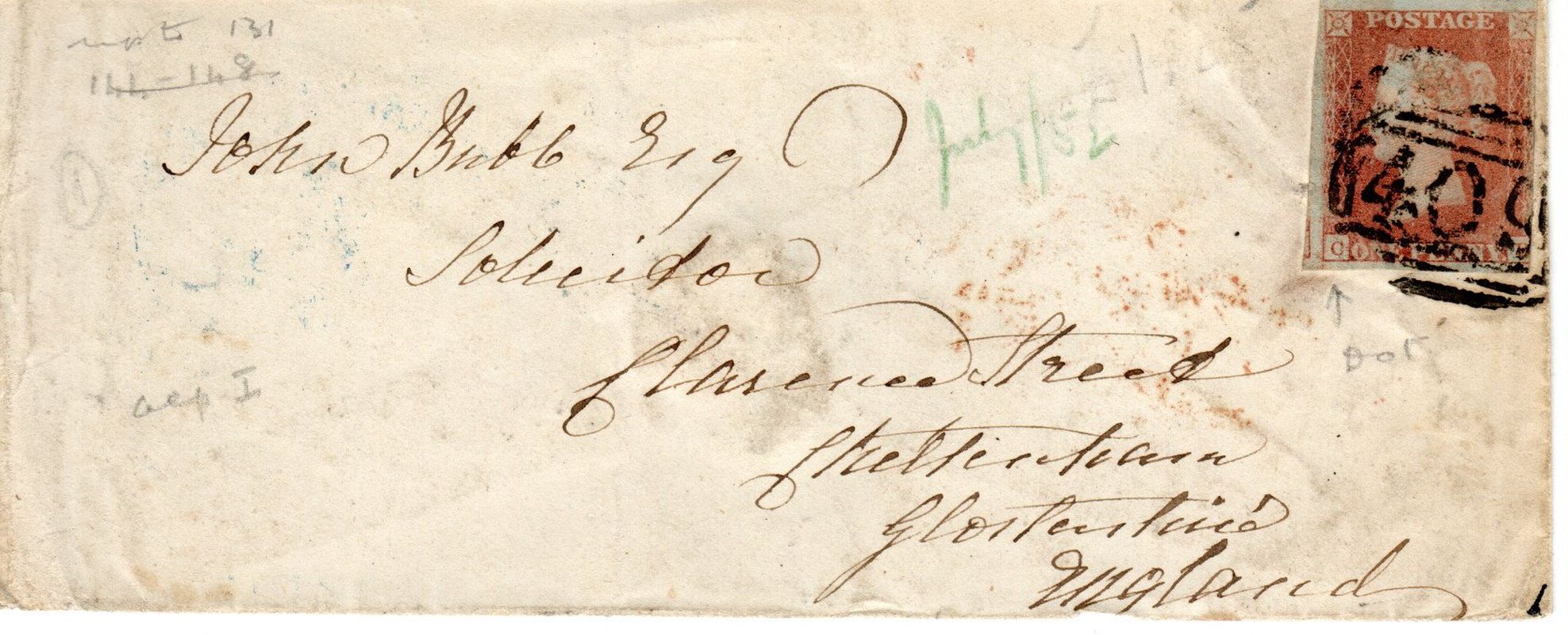 | 16 | JERSEY - 1852 Cover to Cheltenham. With QV Imperf 1d red with '409' cancel. On reverse, fine Jersey double arc datestamp in blue, code A. With Cheltenham arrival datestamp | 12.00 | 13.00 | |