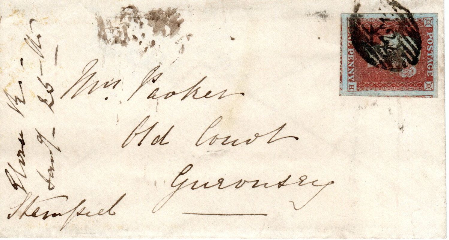 | 12 | GUERNSEY - 1844 Small envelope to Surrey. Endorsed 'Prepd'. With '1' handstamp in red (signifying 1d paid) With fine Guernsey double arc datestamp on reverse. ( SG Postal History cat no. GC13). Seldom seen | 30.00 | 30.00 | |