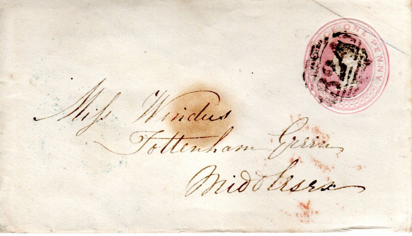 | 19 | GUERNSEY - 1852 1d Pink oval embossed envelope cancelled by a Guernsey 324 numeral. On the reverse is a superb Guernsey dated double arc in blue for NO 24 1852. | 15.00 | 13.50 | |