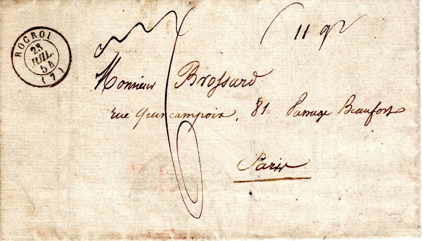 | 20 | JERSEY - 1854 Stampless entire to Paris. Rocroi Transit 23 JUIL 54 (unusual Transit Paris) with Paris arrival datestamp for 24 July. With good ARDENNES MARIE cachet. Letter is from VICE CONSULAT DE PARIS in Jersey. With Consulate cachet in blue | 40.00 | | |