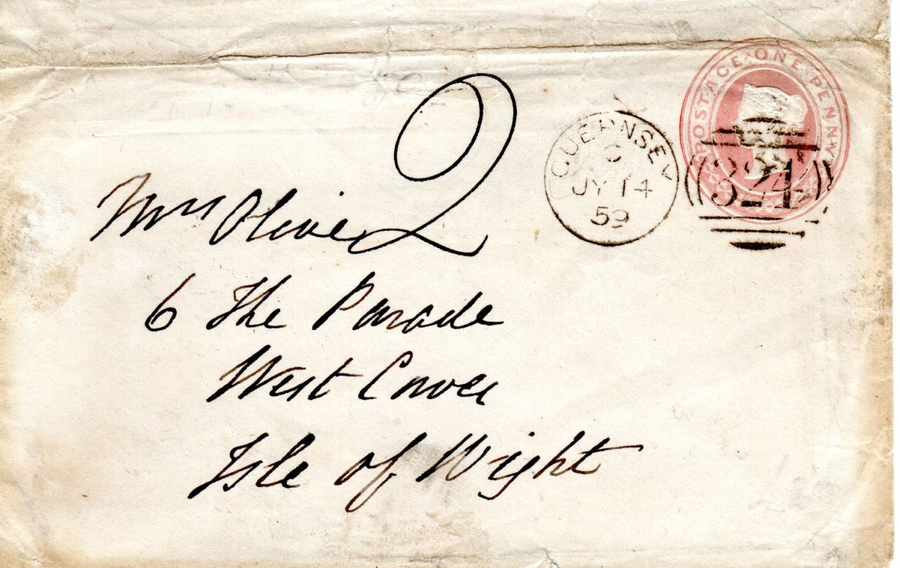 | 23 | GUERNSEY - 1859 1d Pink envelope to the IOW cancelled by a good Guernsey 324 duplex on JY 14 1859. Also shown is a manuscript “2”, an extra charge due to the envelope being overweight. | 25.00 | 55.00 | |