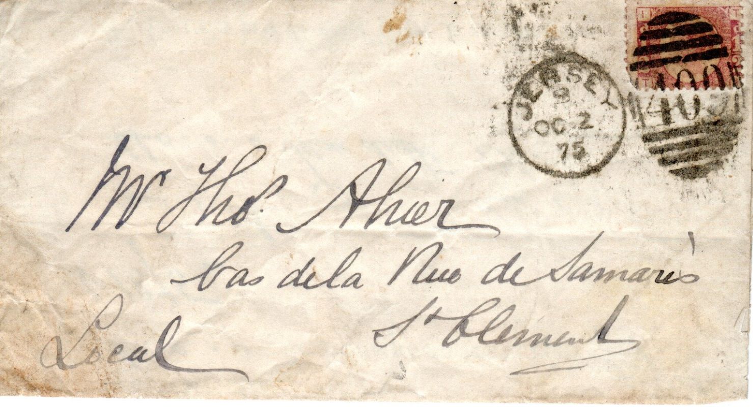 | 33 | JERSEY - 1875 ½d bantam on a cover addressed locally to St. Clement cancelled by a Jersey 409 duplex code B for OC 2 1875 with doctor’s bill contents. | 20.00 | | |