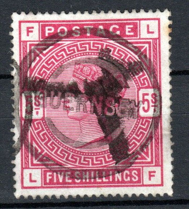 | 35 | GUERNSEY - QV 5/- stamp with fair circular 'GUERNSEY' parcel post handstamp | 12.00 | 12.00 | |