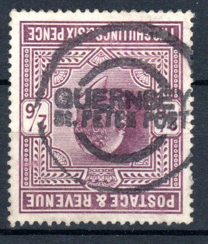 | 37 | GUERNSEY - KEVII 2/6d stamp with fine GUERNSEY /ST PETER PORT circular parcel handstamp | 12.00 | 36.00 | |