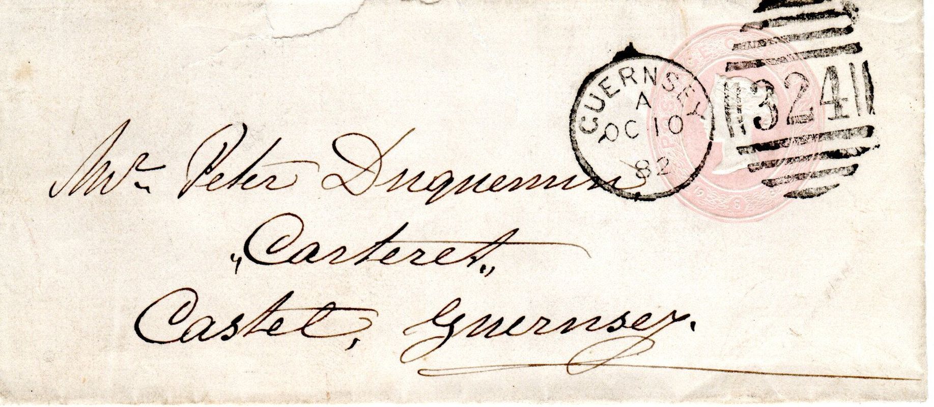 | 41 | GUERNSEY - 1882 QV 1d pink postal stationery env with superb Guernsey duplex cancel, code A. Addressed locally. Item has a 1cm. tear at top of envelope. Low reserve | 5.00 | 5.00 | |