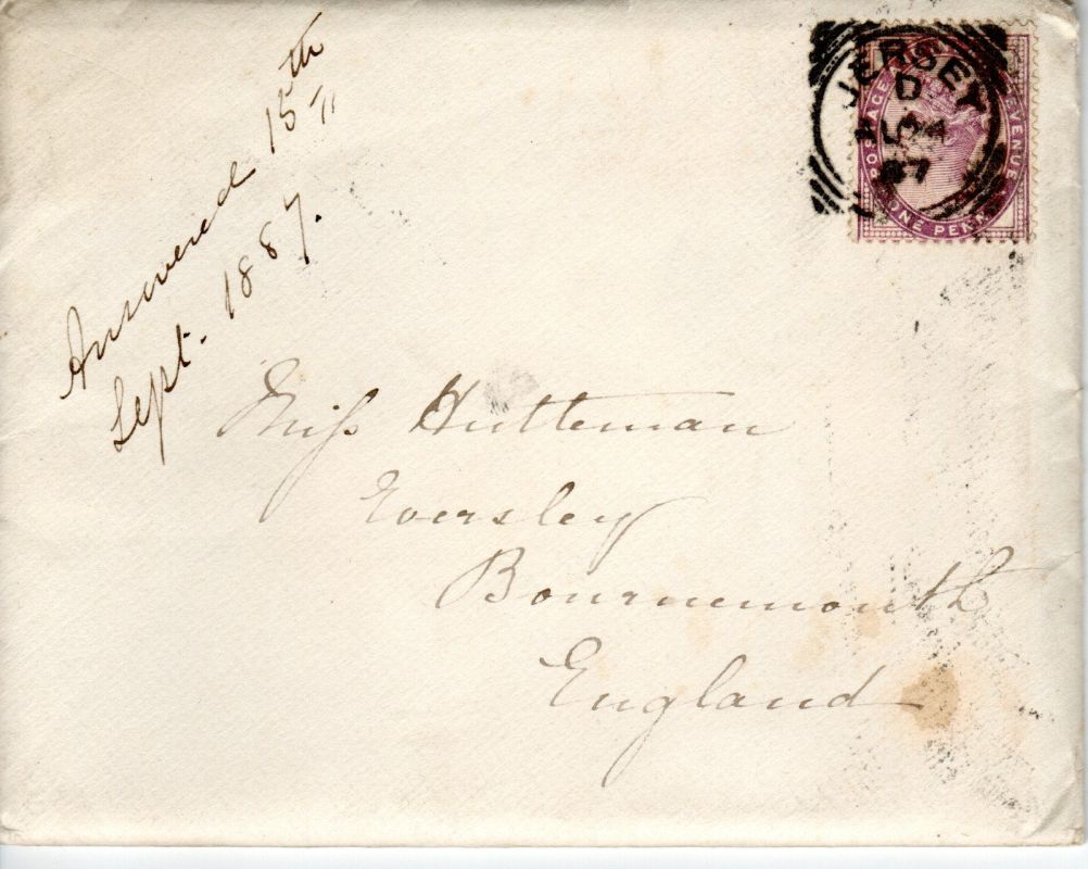 | 44 | JERSEY - 1887 cover with contents from Jersey to Bournemouth showing a 1d lilac cancelled by a Jersey squared circle on AU 24 1887. | 5.00 | 5.00 | |