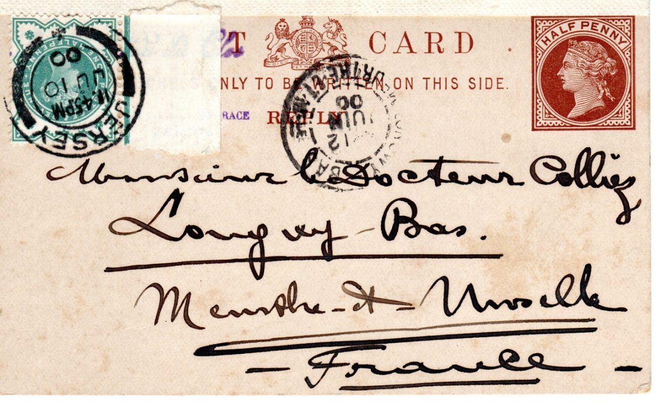 | 57 | JERSEY - 1899 Court card used to France. With QV 1d lilac. Jersey d/circle datestamp | 10.00 | | |