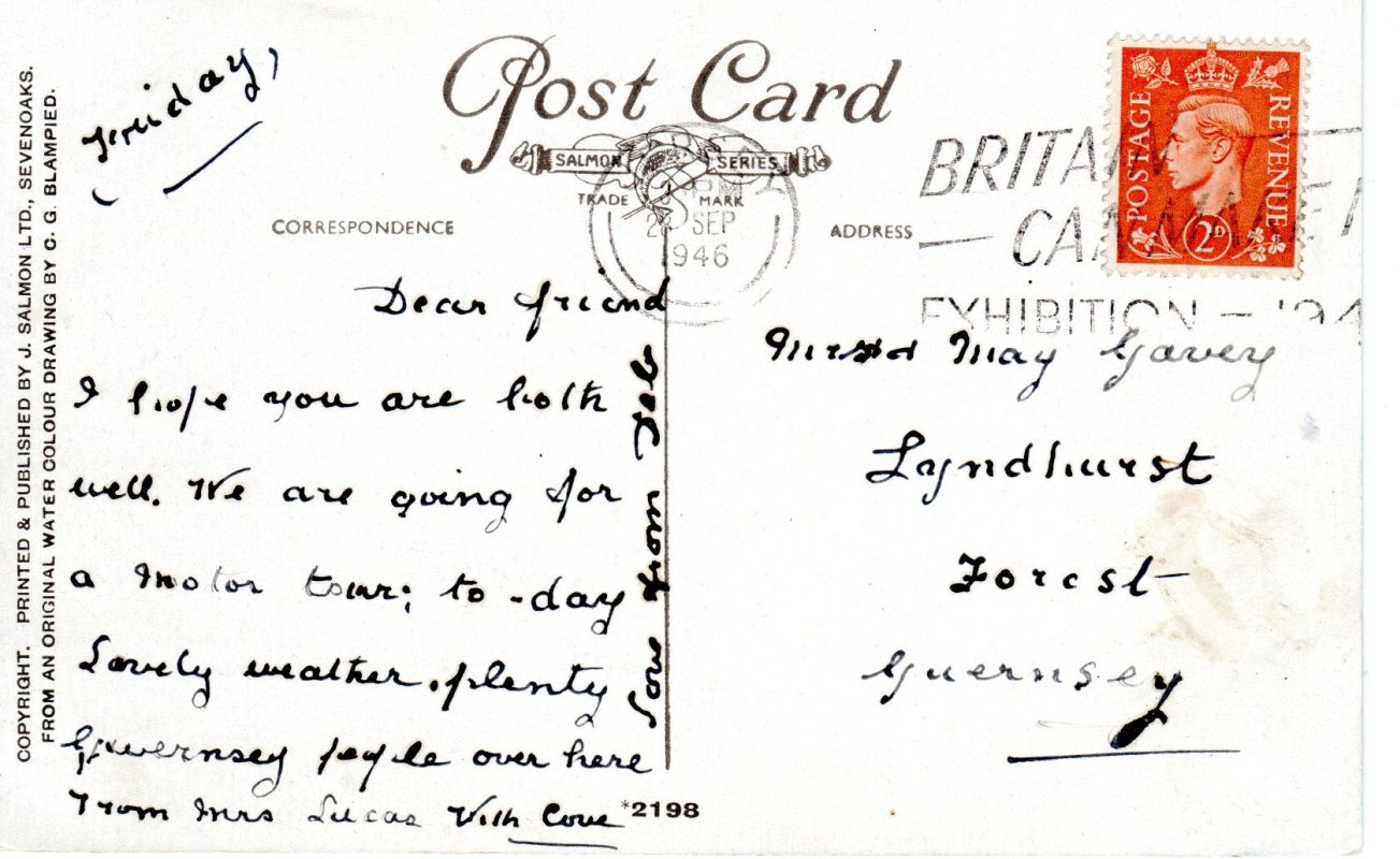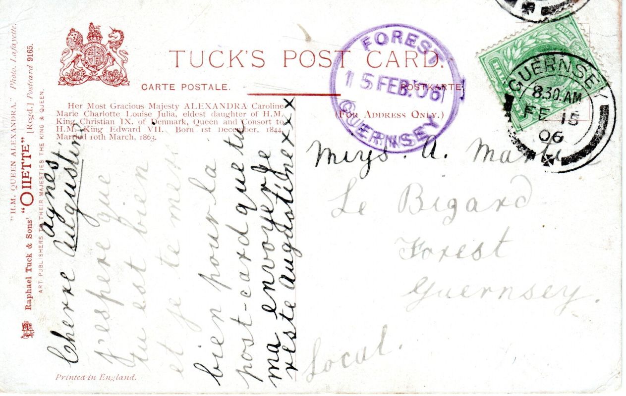 | 72 | GUERNSEY 1914(?) Postcard with Forest Guernsey rubber datestamp in Grey cancelling stamp | 8.00 | | |