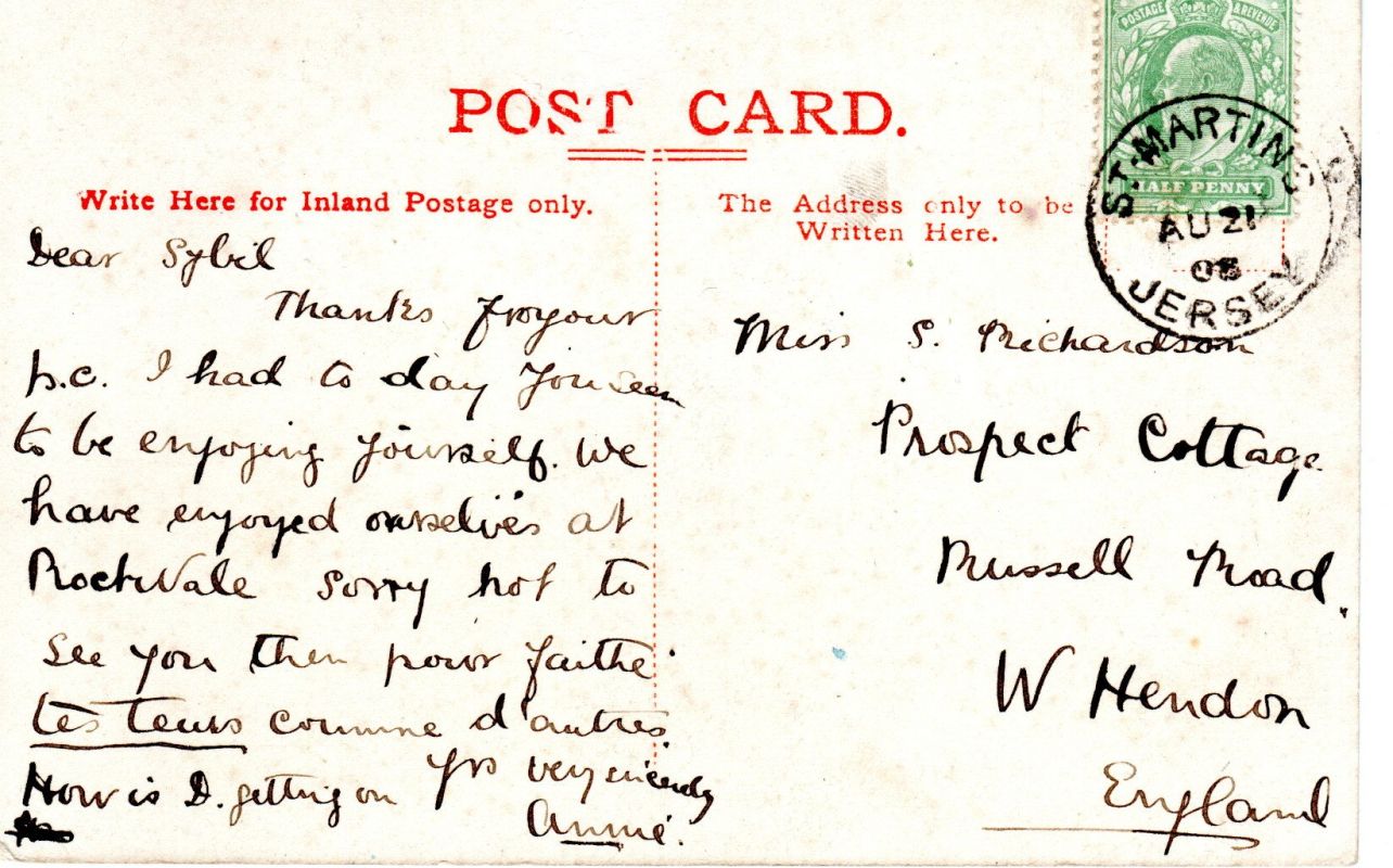 | 82 | JERSEY - 1908 Postcard with St Martins datestamp | 2.00 | 2.00 | |