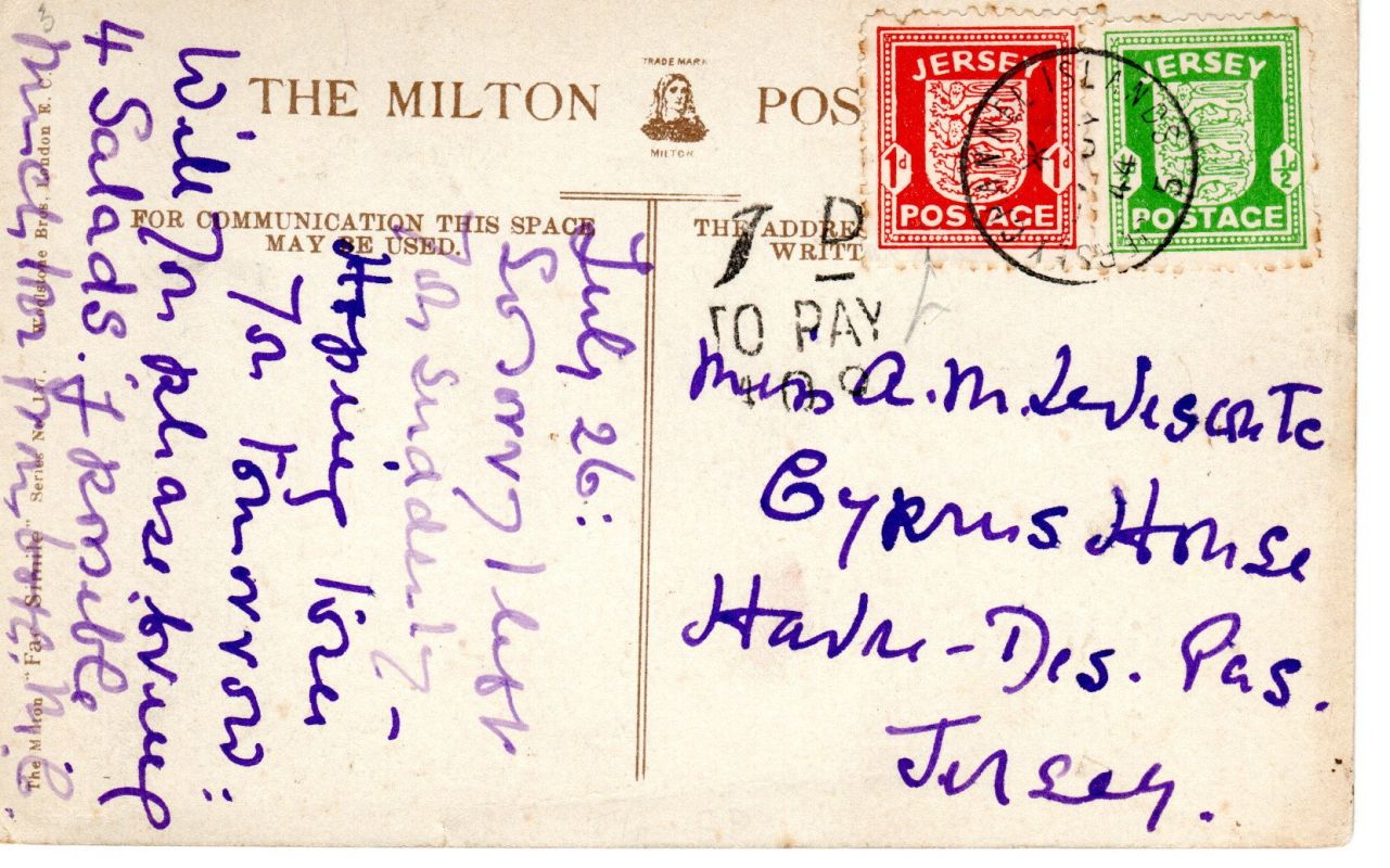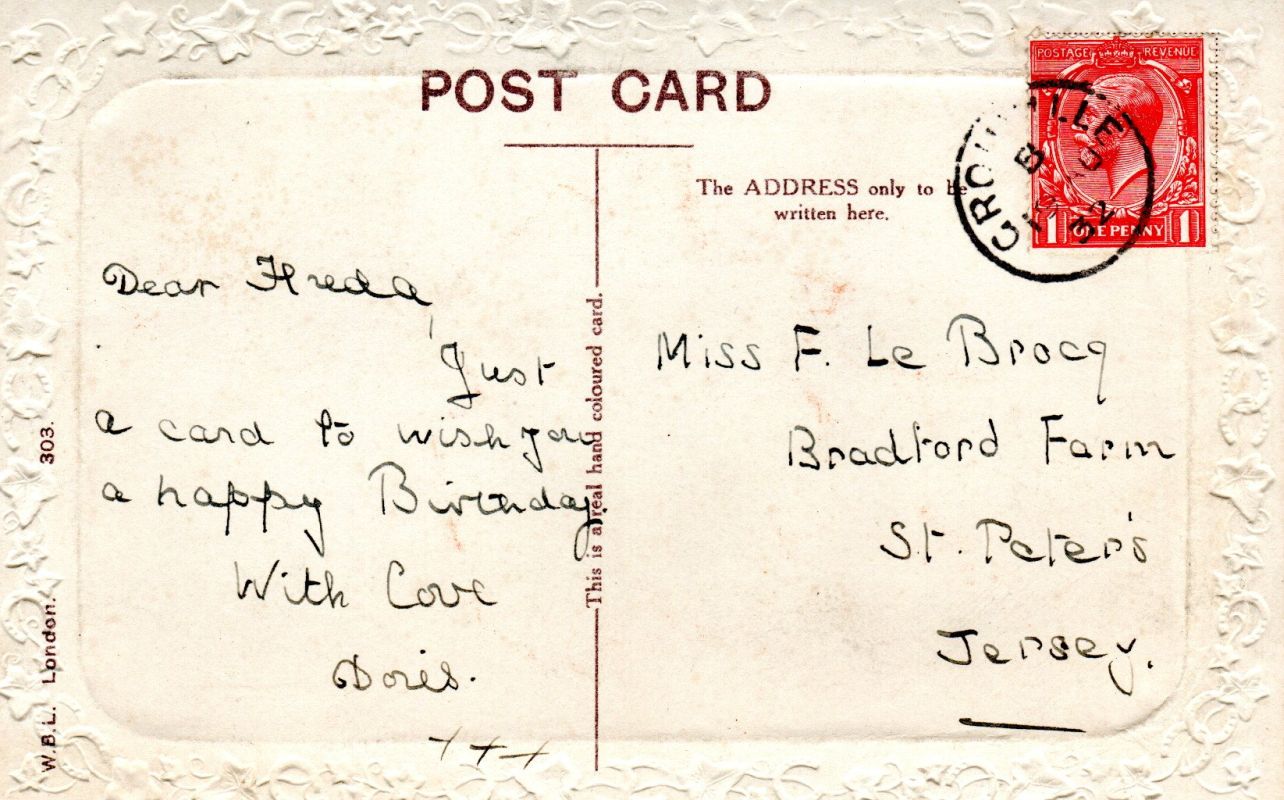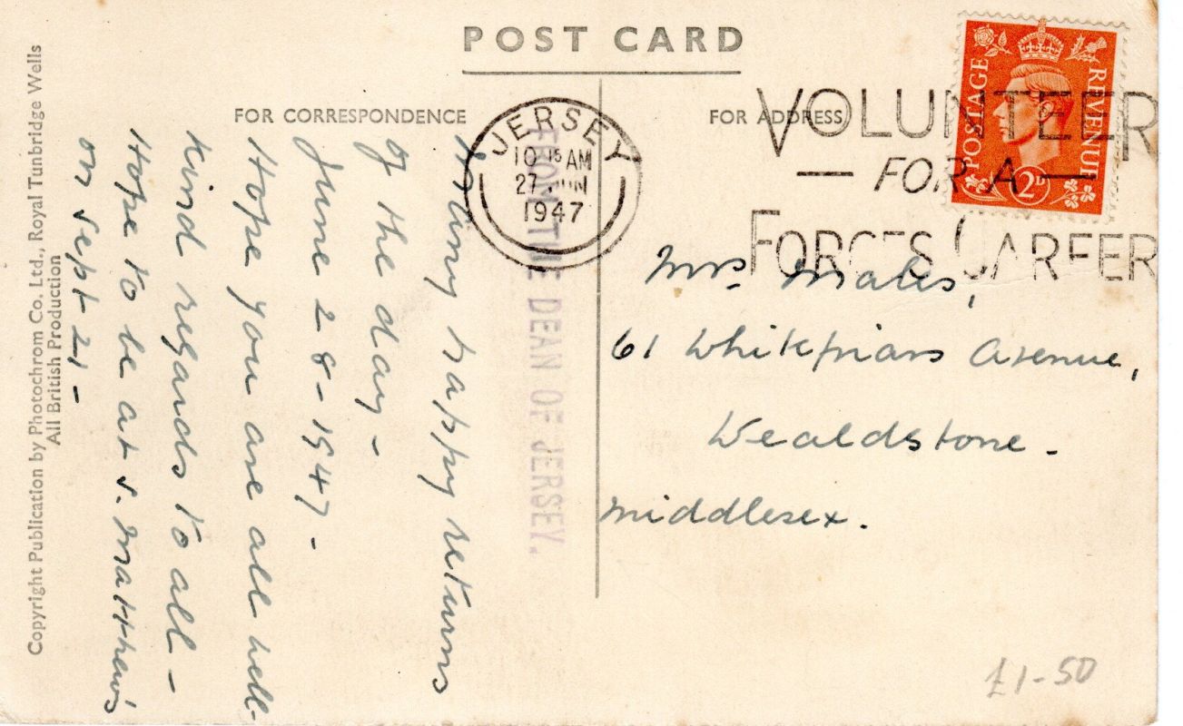 | 84 | JERSEY - 1932 Postcard with Grouville datestamp, code B | 3.00 | | |