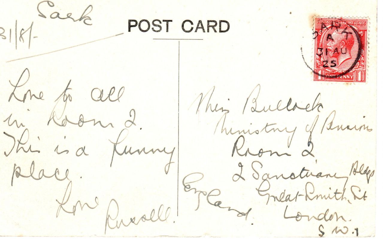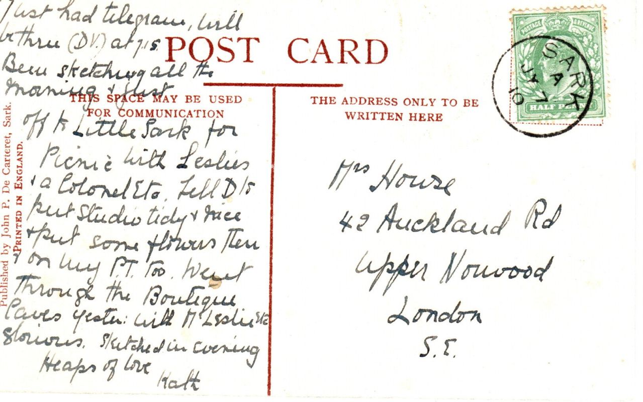 | 97 | SARK - 1910 Postcard to London with fine Sark datestamp | 5.00 | 5.00 | |