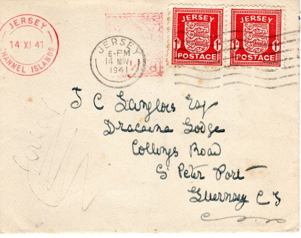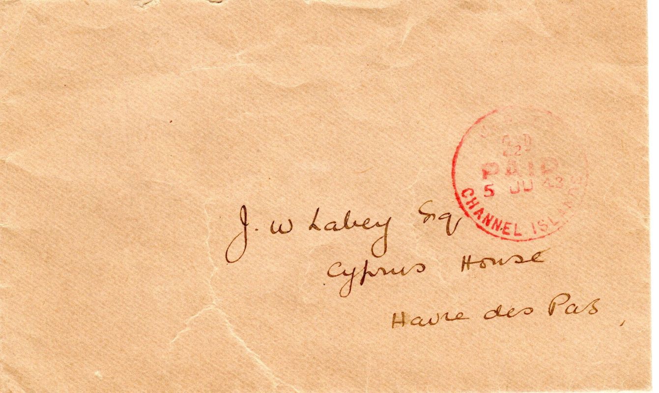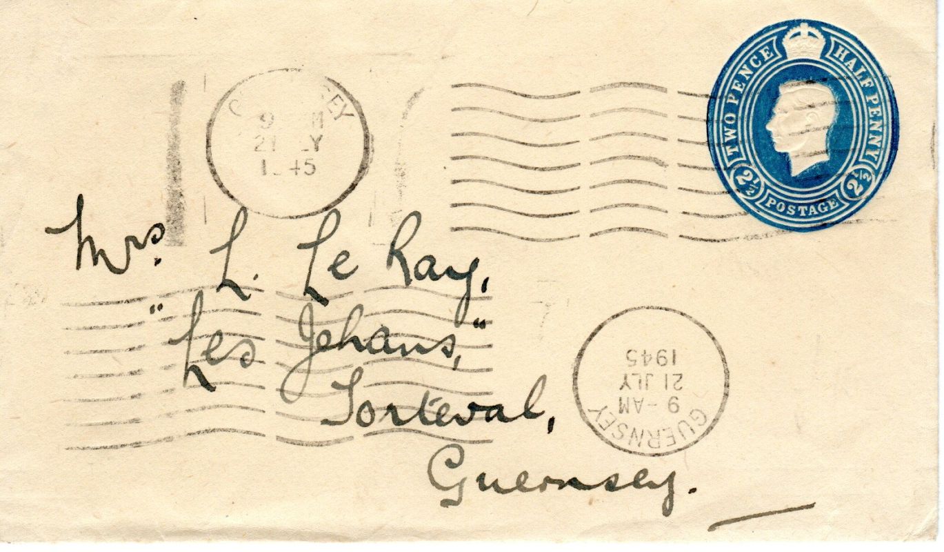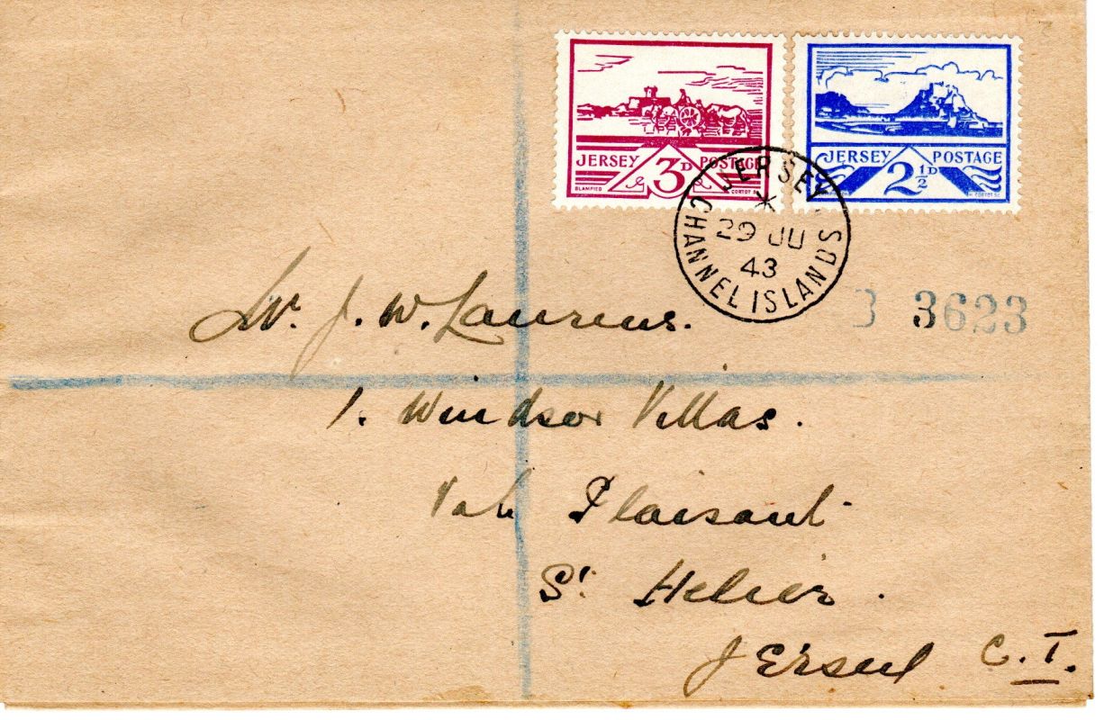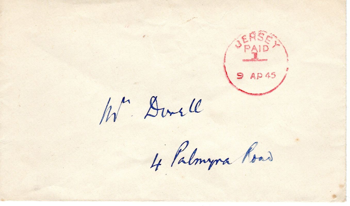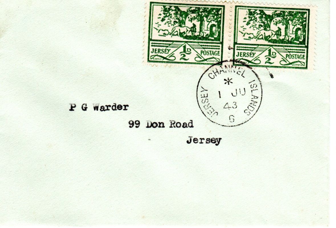 | 707 | JERSEY - July 1943 cover used twice. First time on 1 July with Jersey 1d PAID datestamp. Second usage with Jersey 1d Views and machine cancel for 18 July | 15.00 | | |