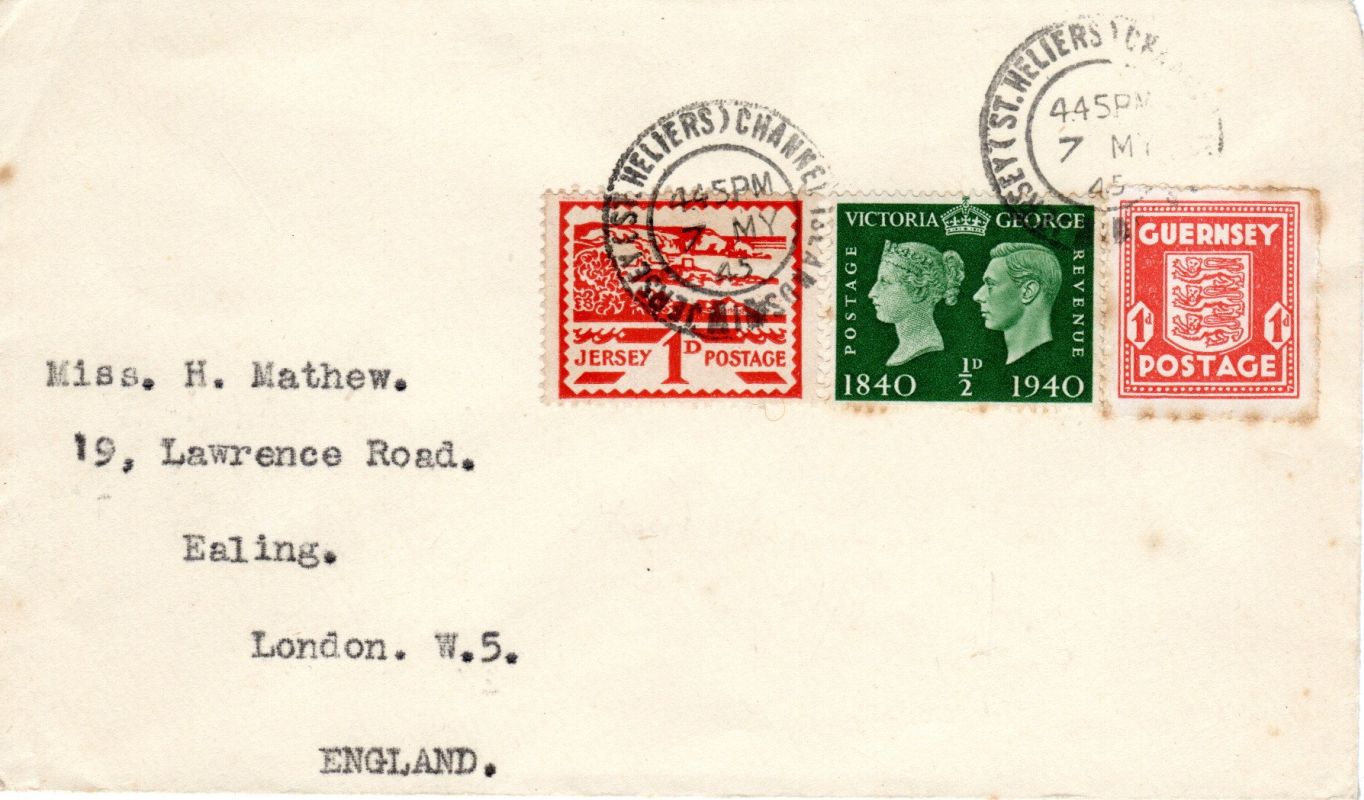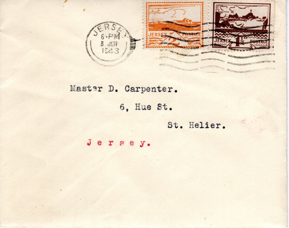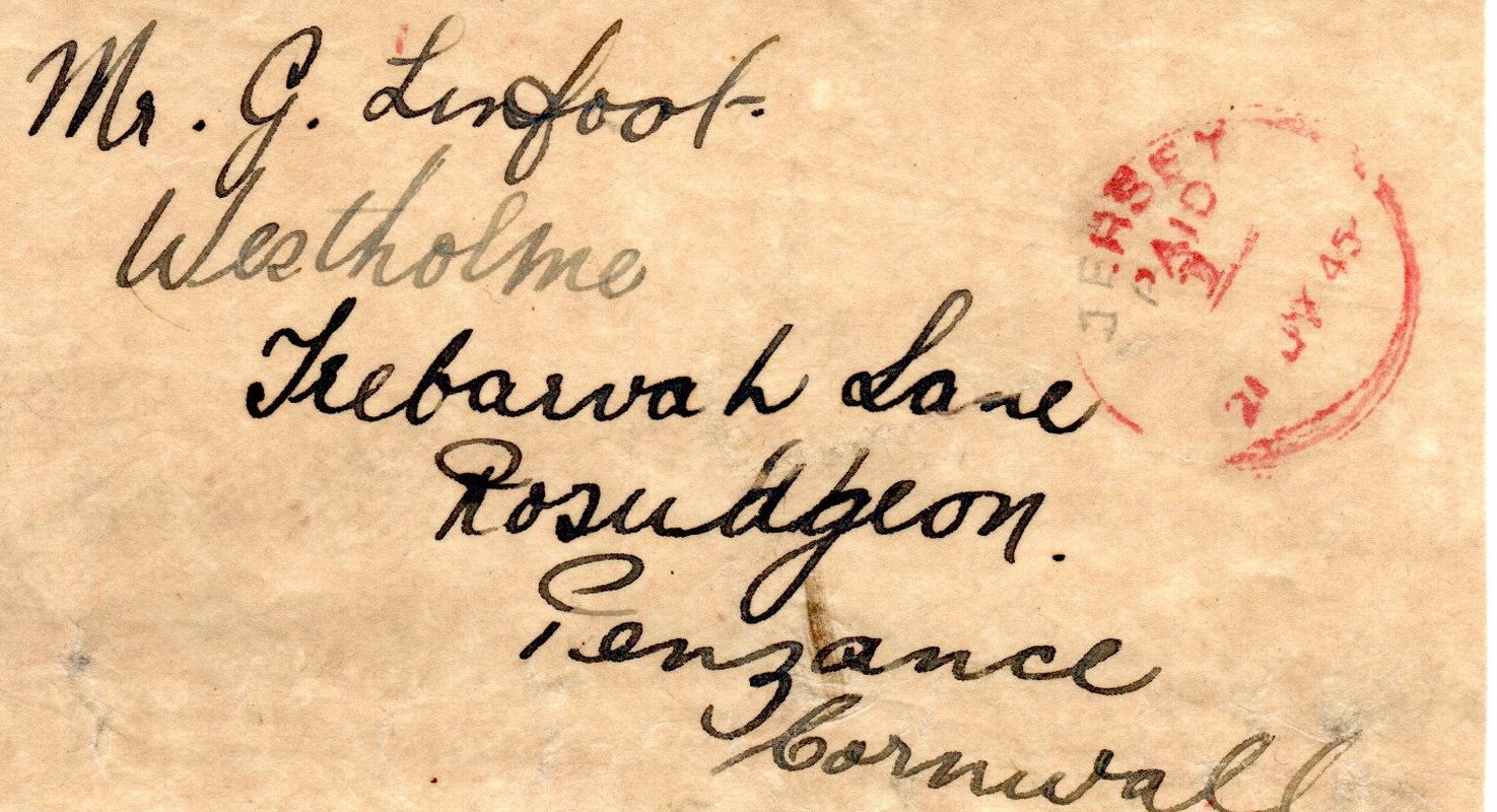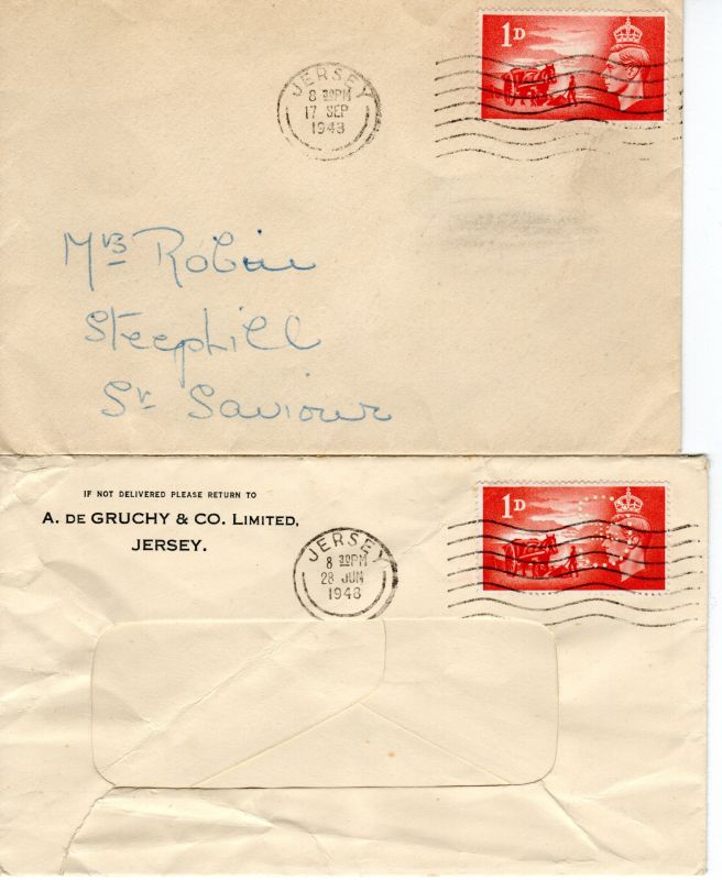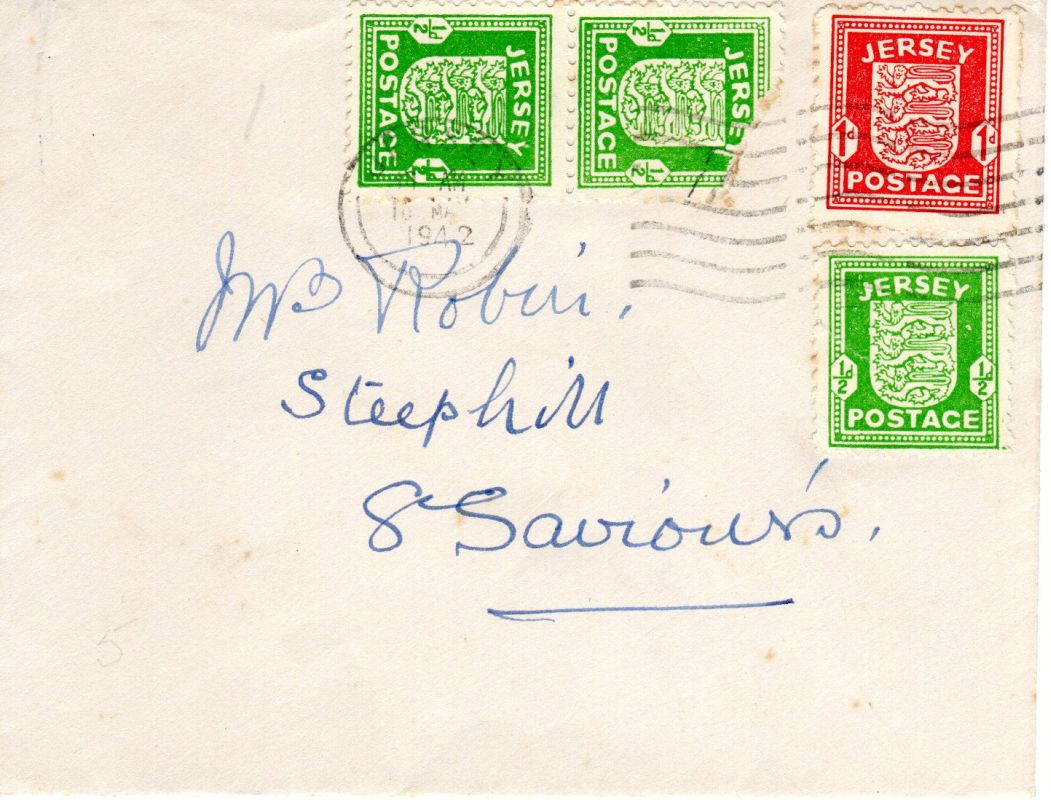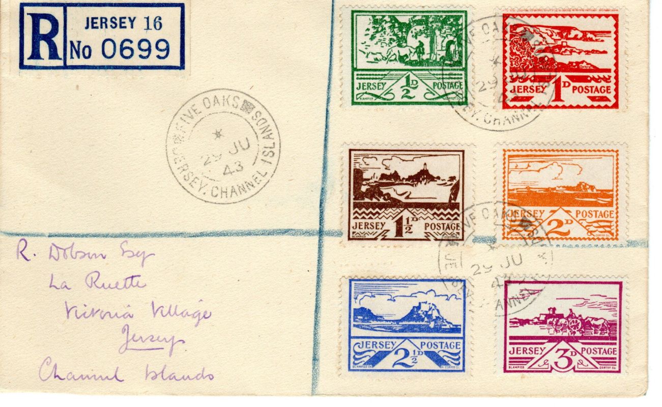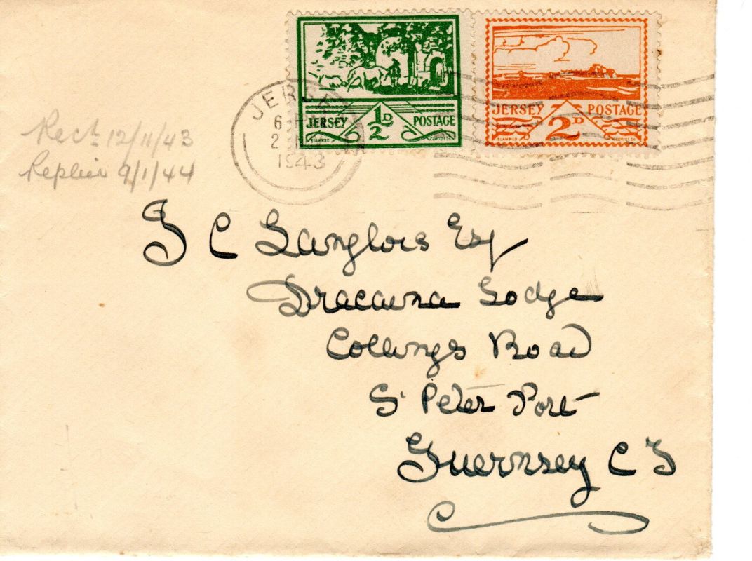 | 707 | JERSEY - July 1943 cover used twice. First time on 1 July with Jersey 1d PAID datestamp. Second usage with Jersey 1d Views and machine cancel for 18 July | 15.00 | | |