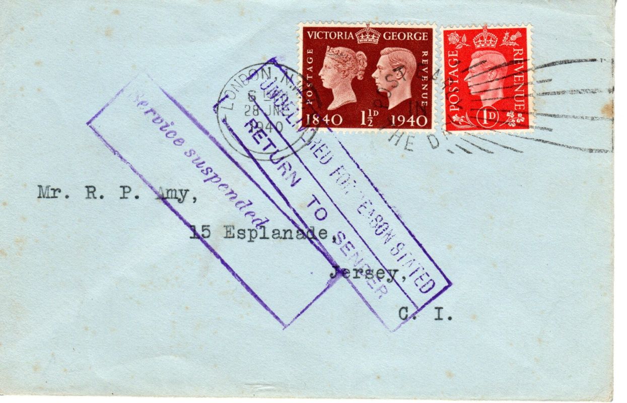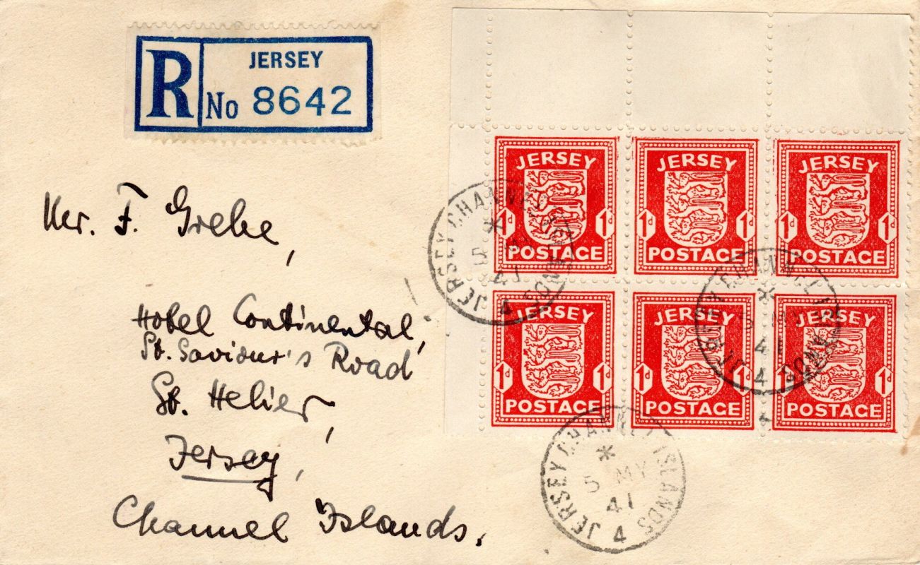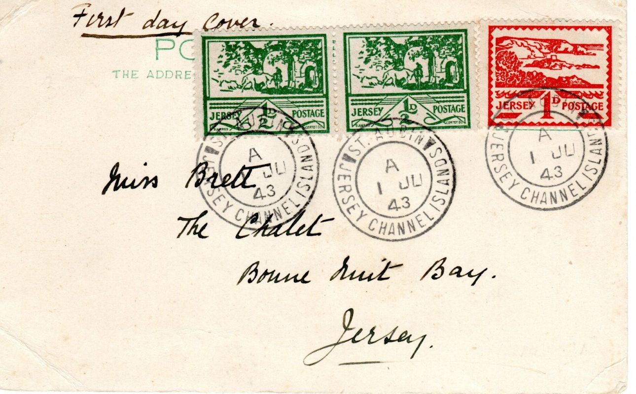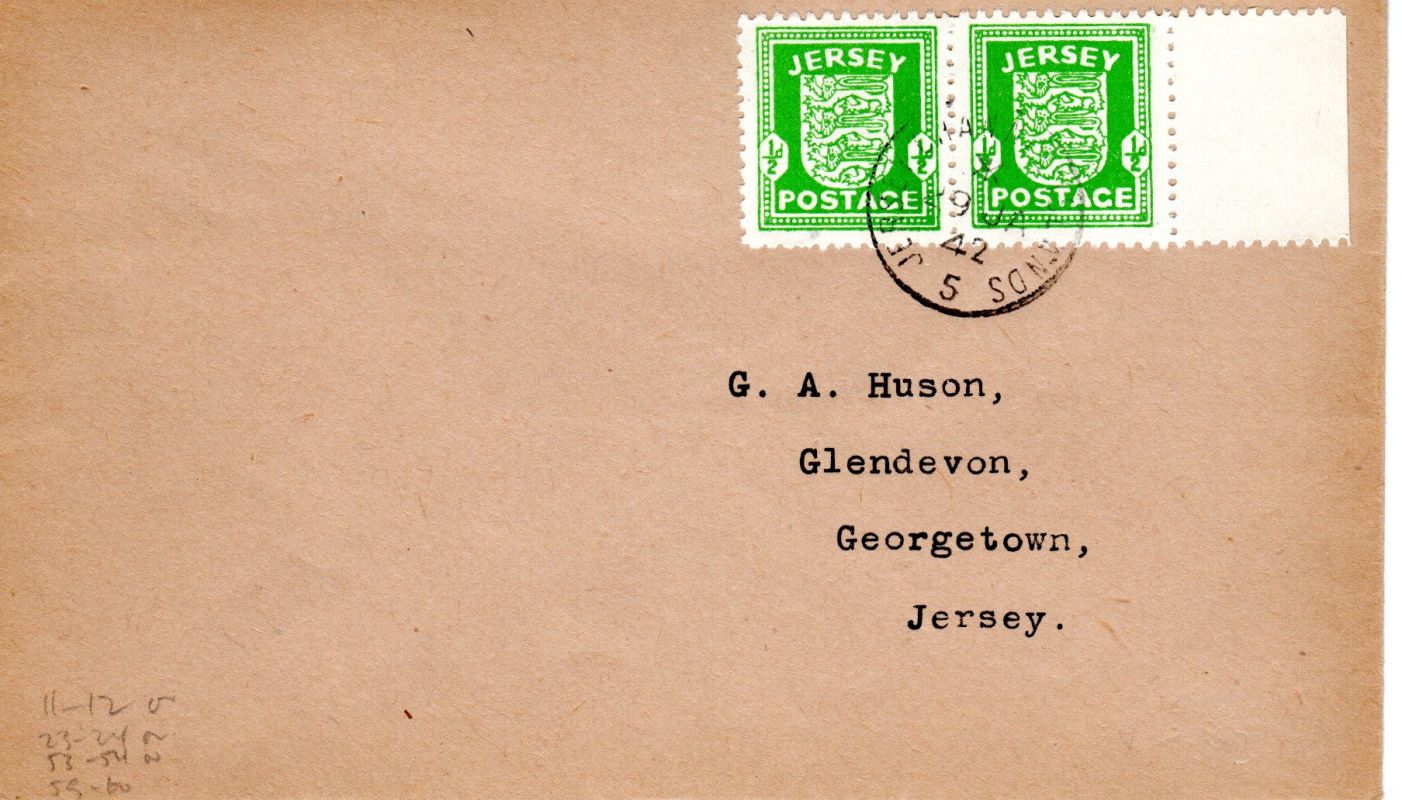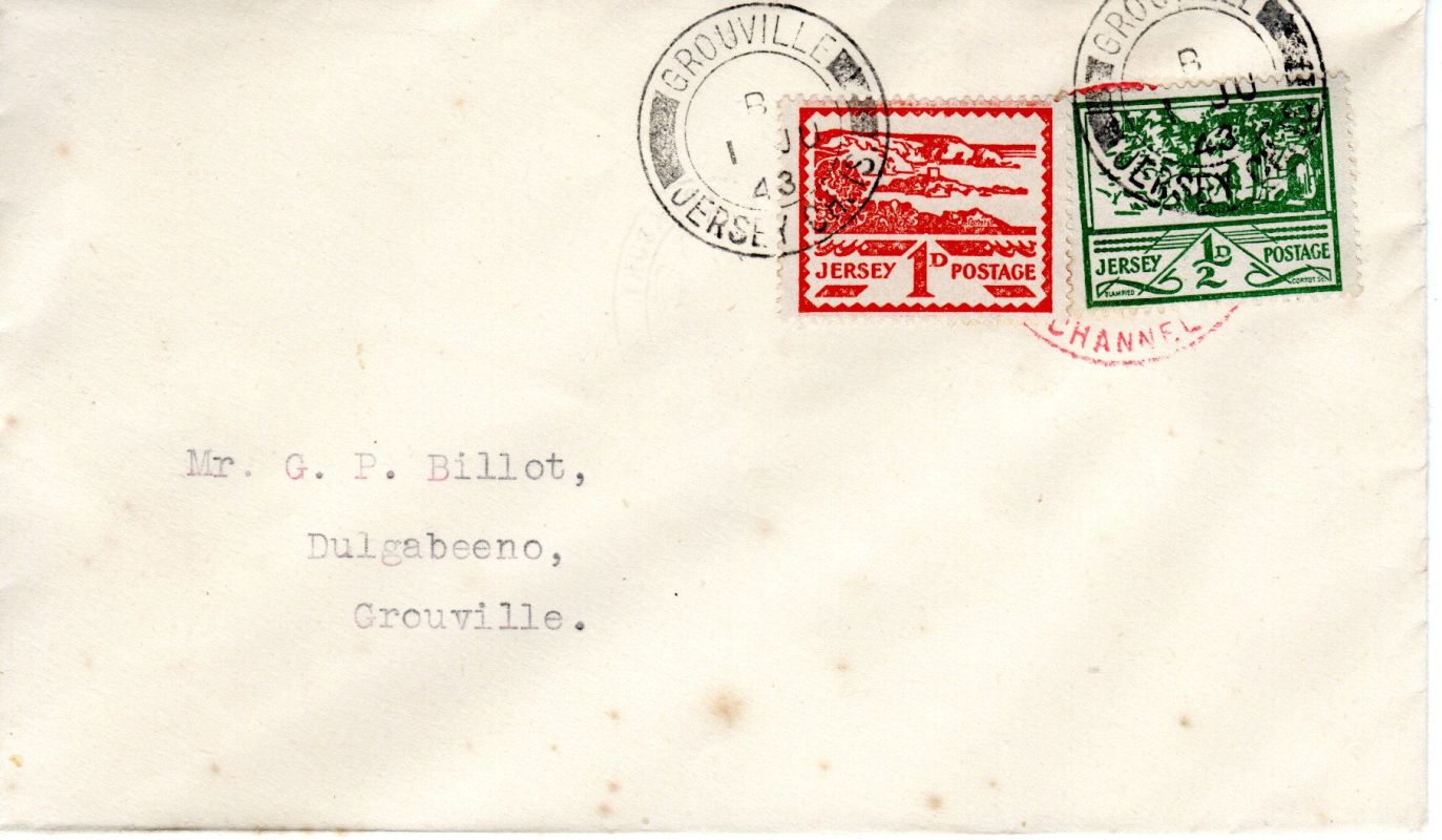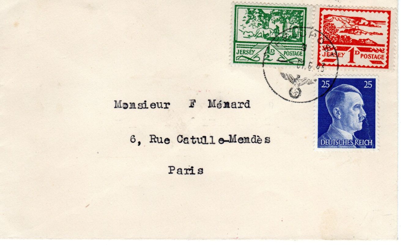 | 707 | JERSEY - July 1943 cover used twice. First time on 1 July with Jersey 1d PAID datestamp. Second usage with Jersey 1d Views and machine cancel for 18 July | 15.00 | | |
