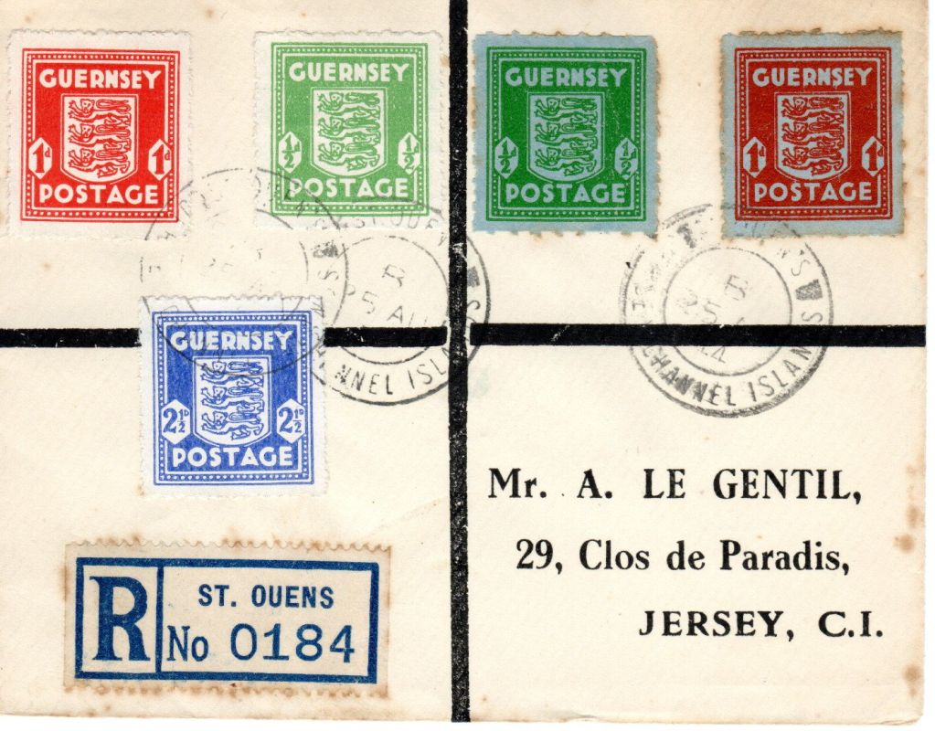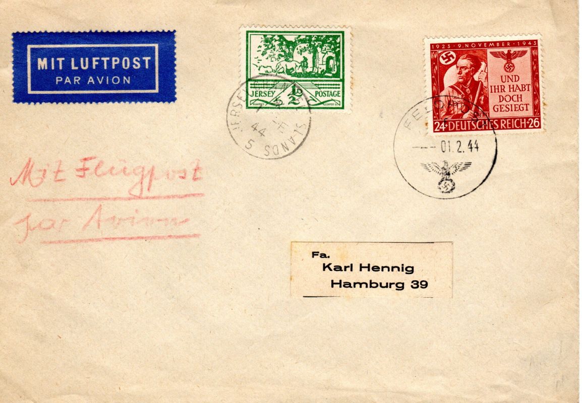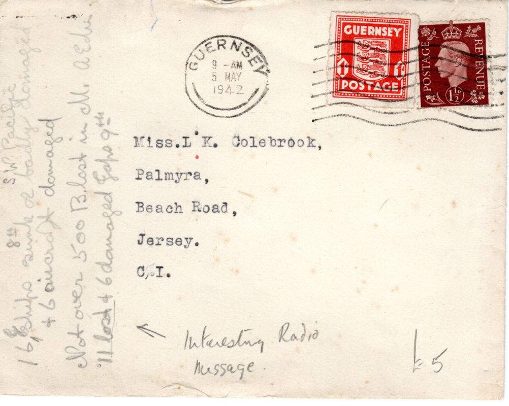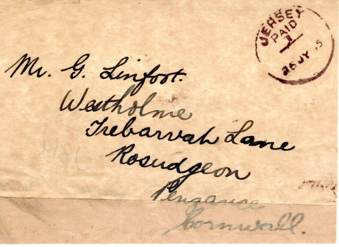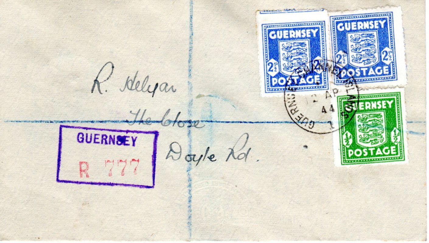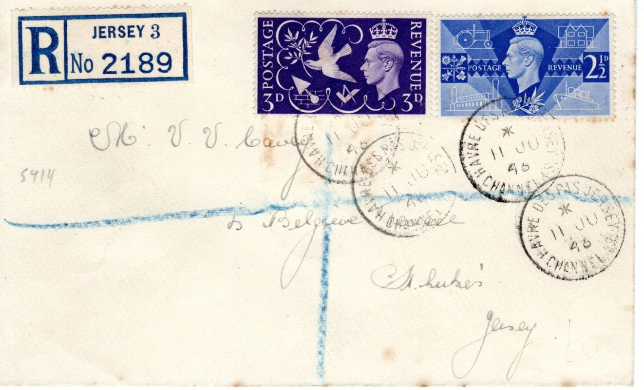 | 707 | JERSEY - July 1943 cover used twice. First time on 1 July with Jersey 1d PAID datestamp. Second usage with Jersey 1d Views and machine cancel for 18 July | 15.00 | | |