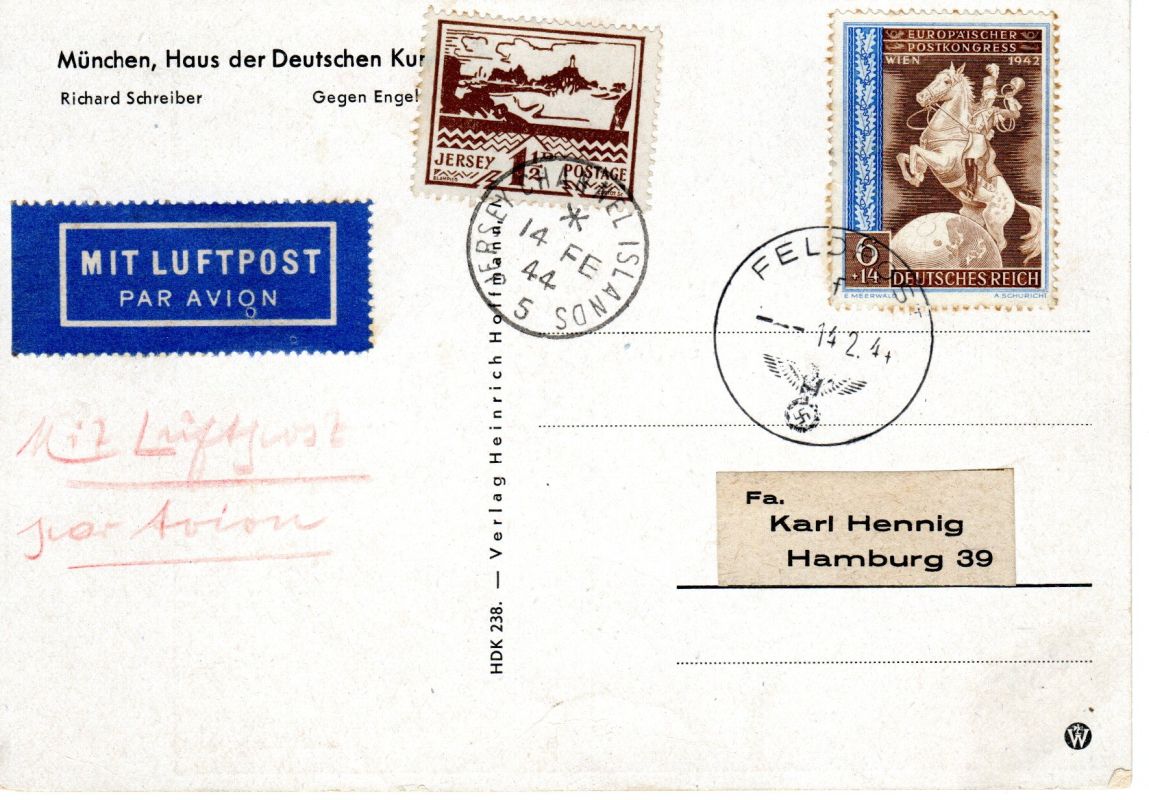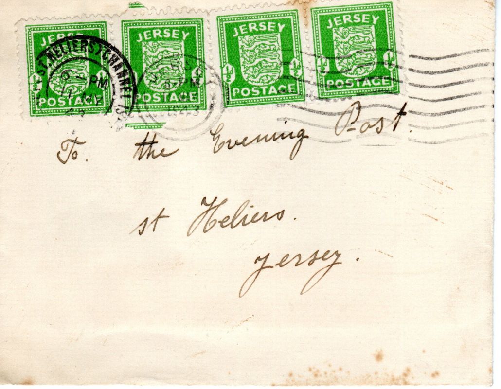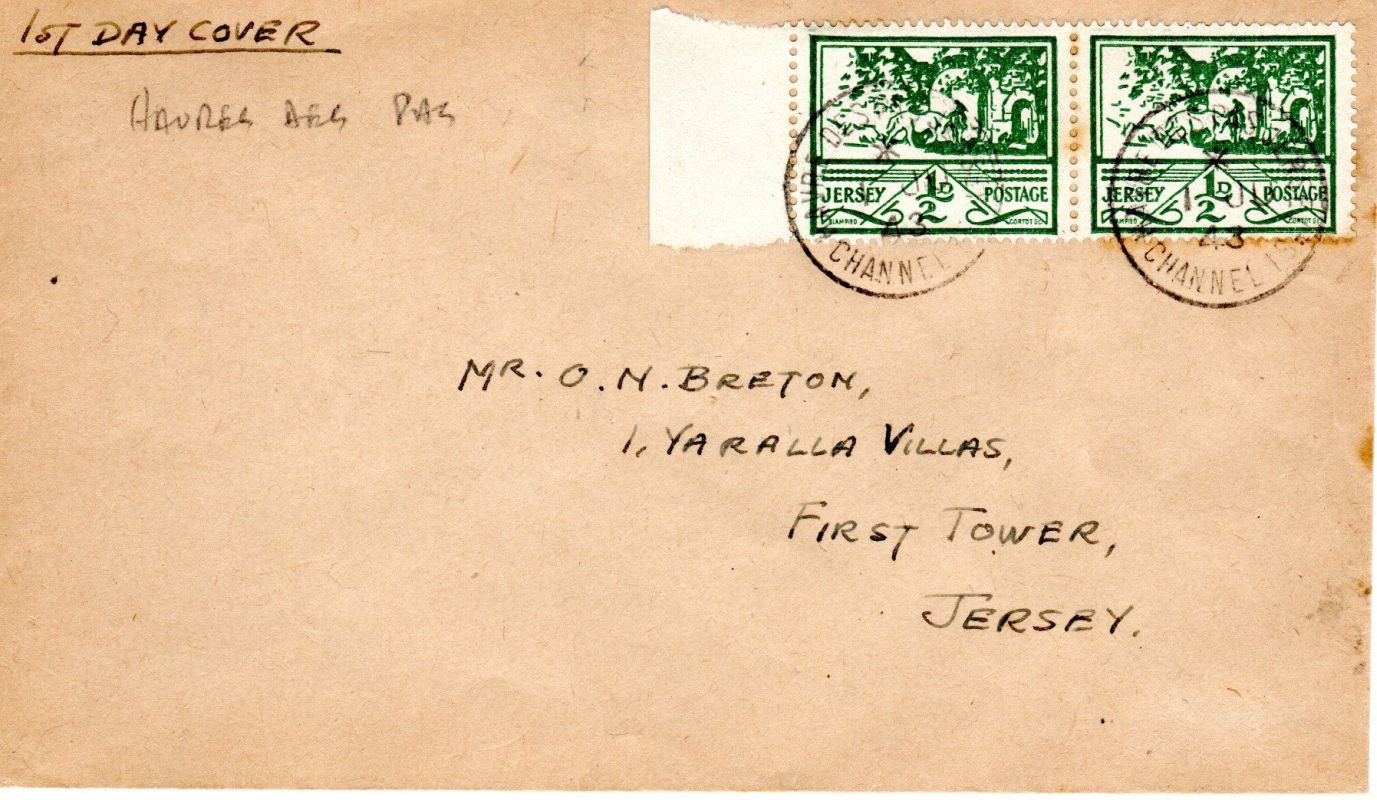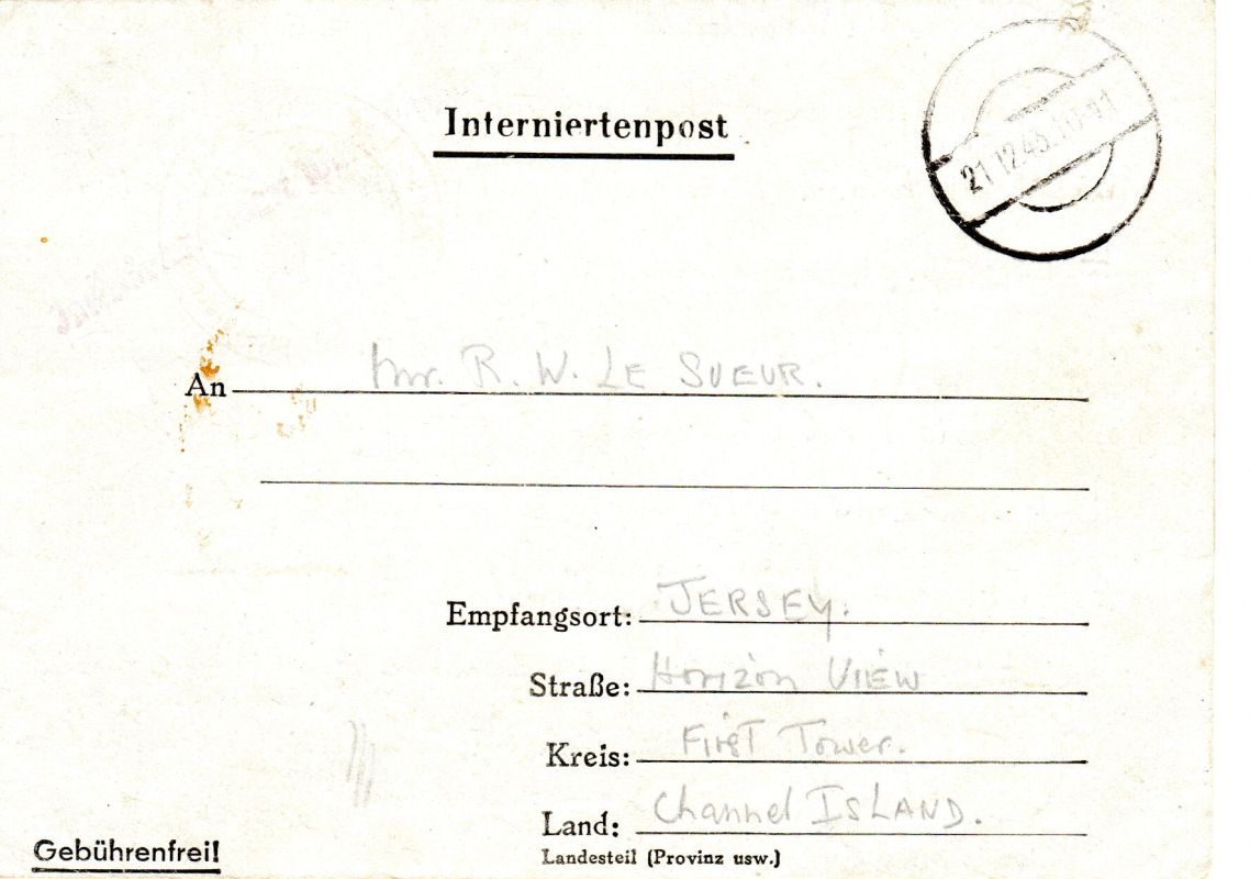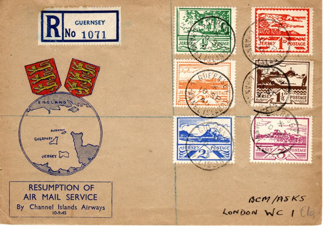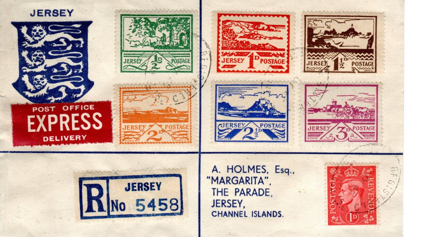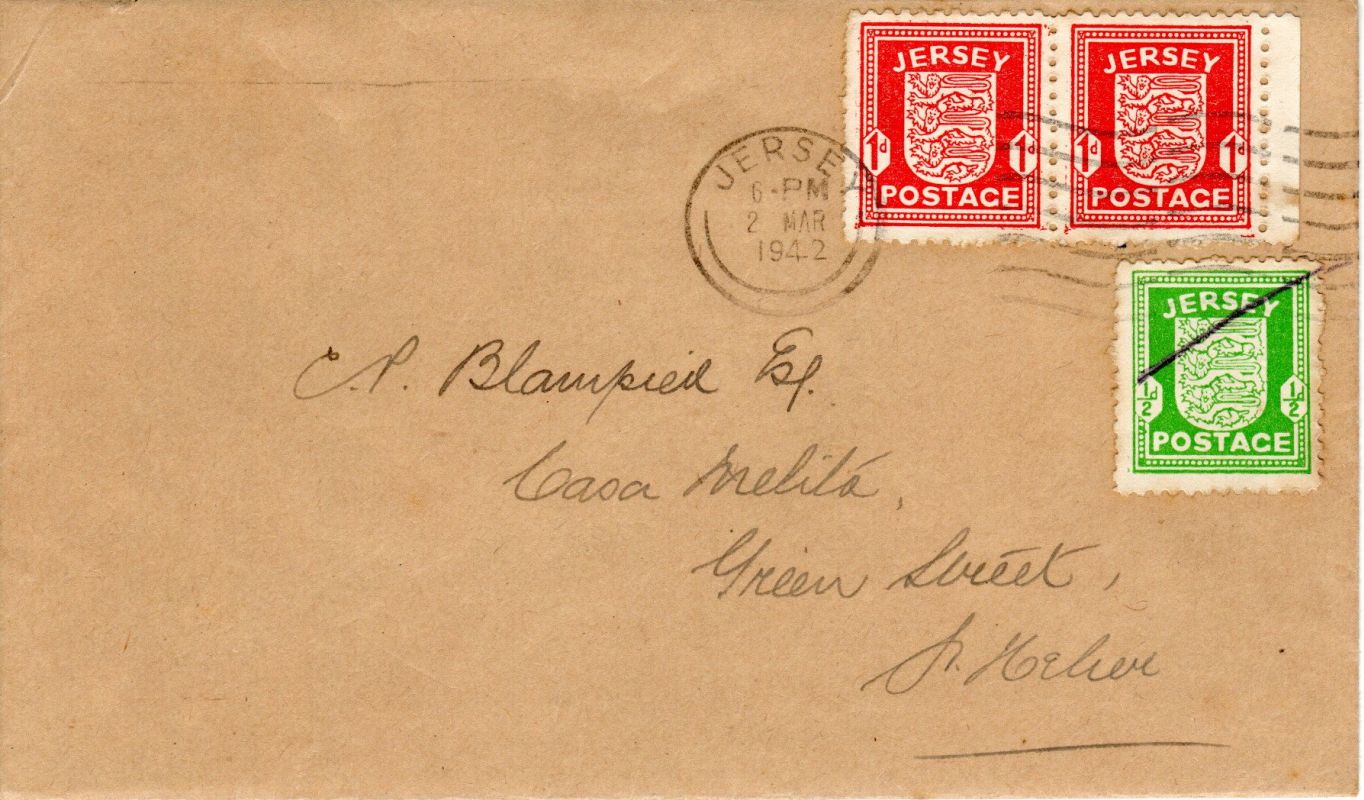 | 707 | JERSEY - July 1943 cover used twice. First time on 1 July with Jersey 1d PAID datestamp. Second usage with Jersey 1d Views and machine cancel for 18 July | 15.00 | | |