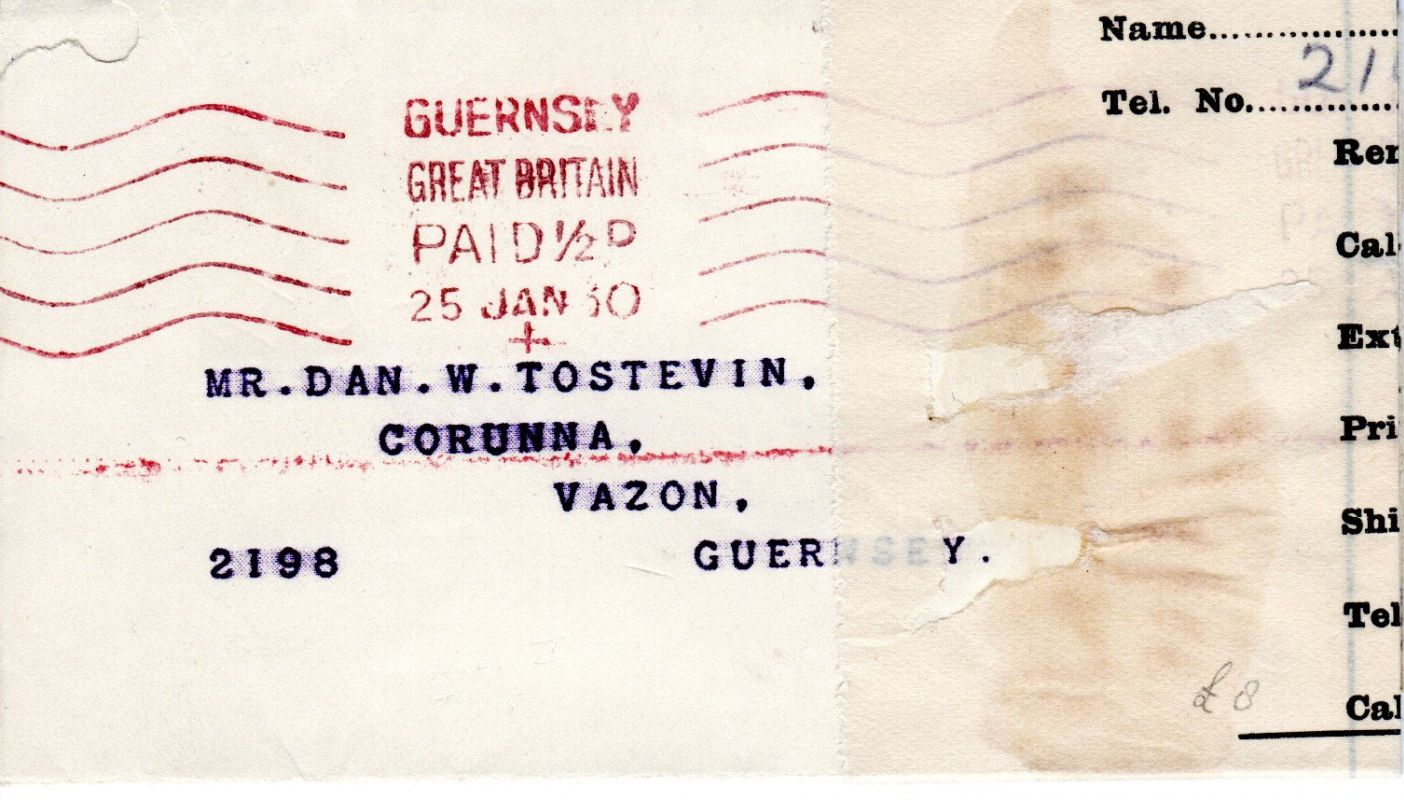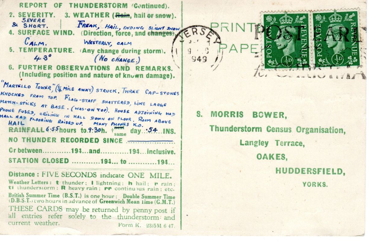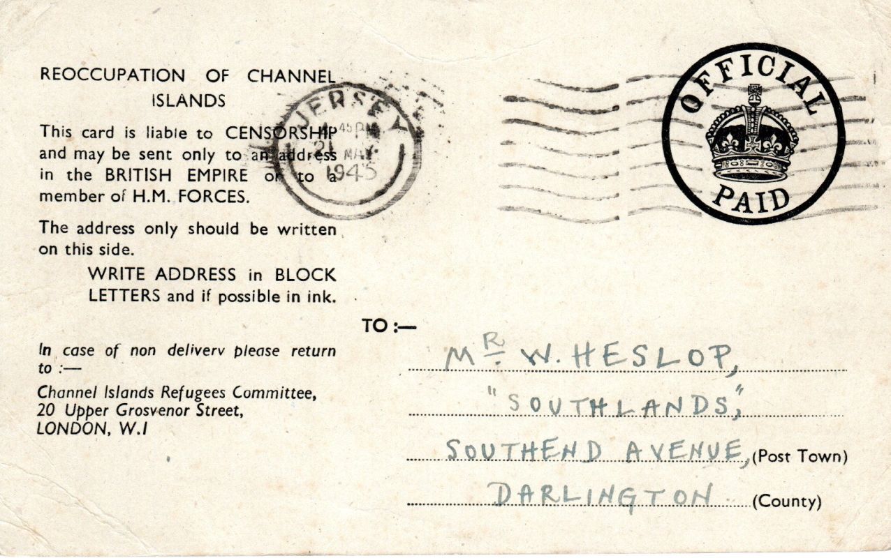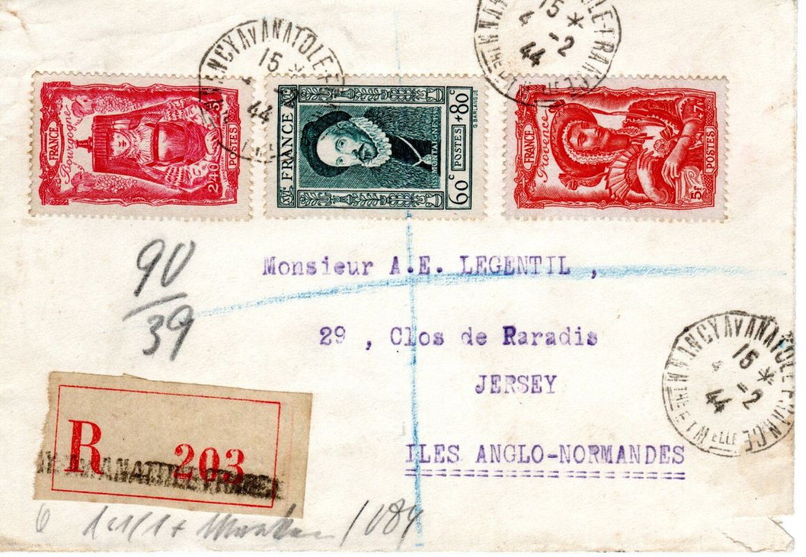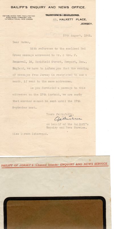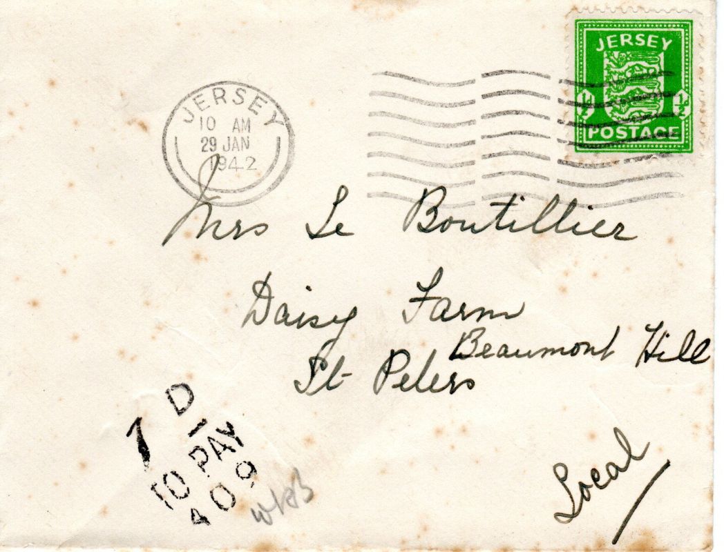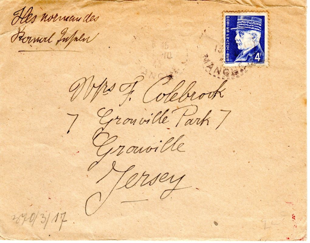 | 707 | JERSEY - July 1943 cover used twice. First time on 1 July with Jersey 1d PAID datestamp. Second usage with Jersey 1d Views and machine cancel for 18 July | 15.00 | | |