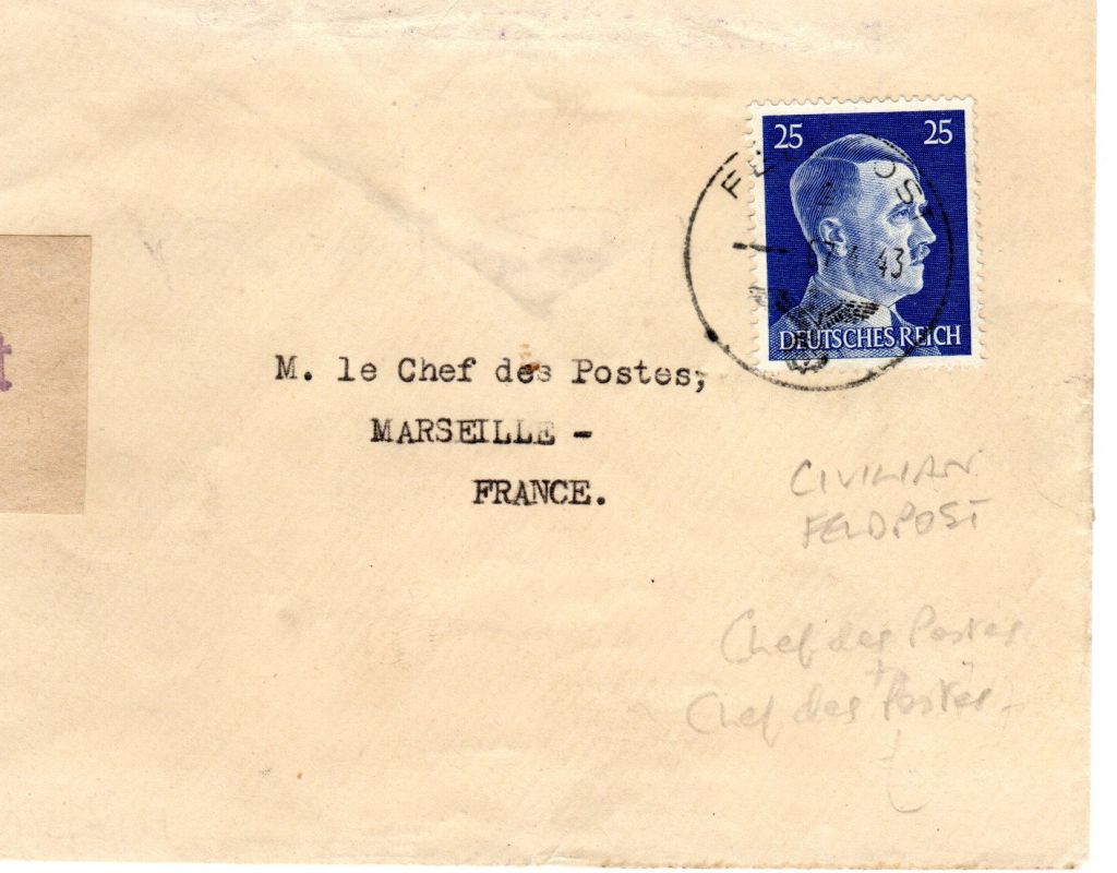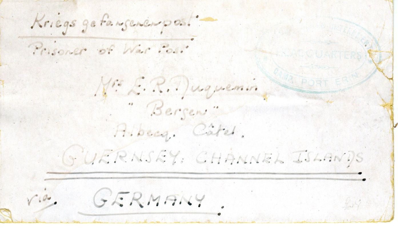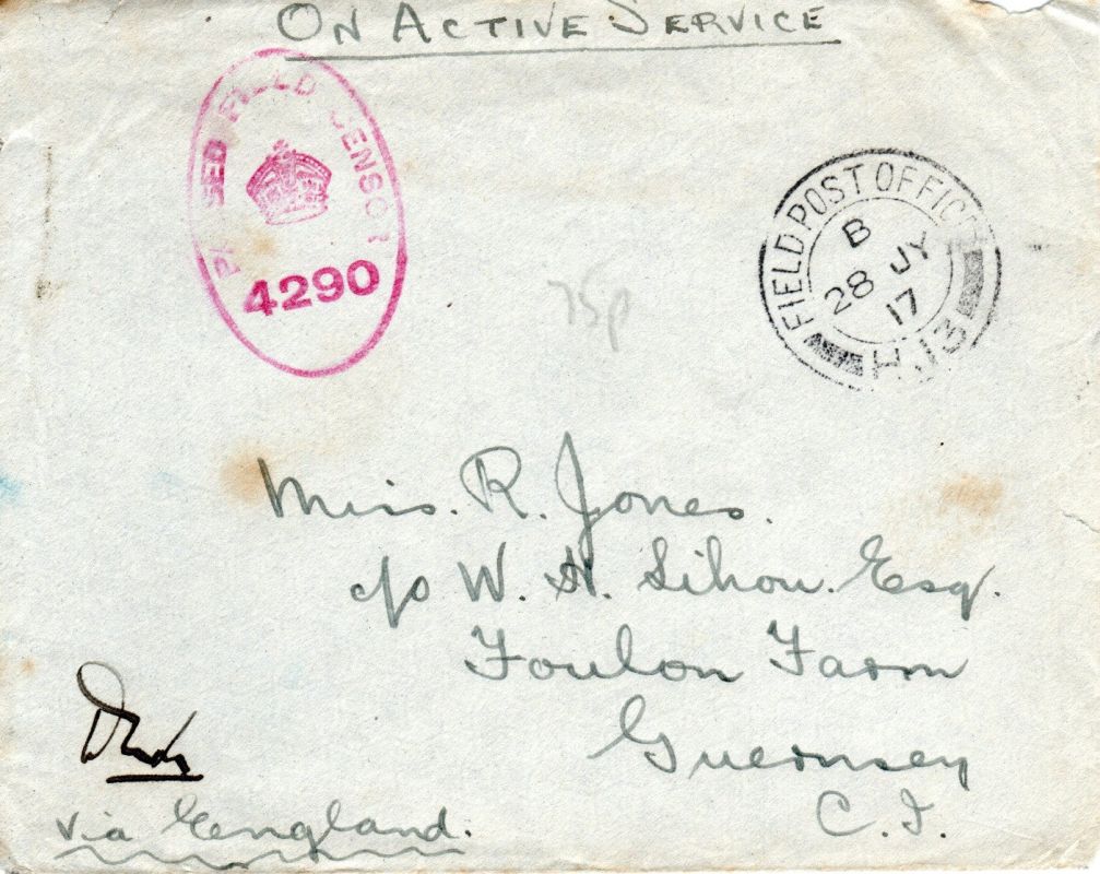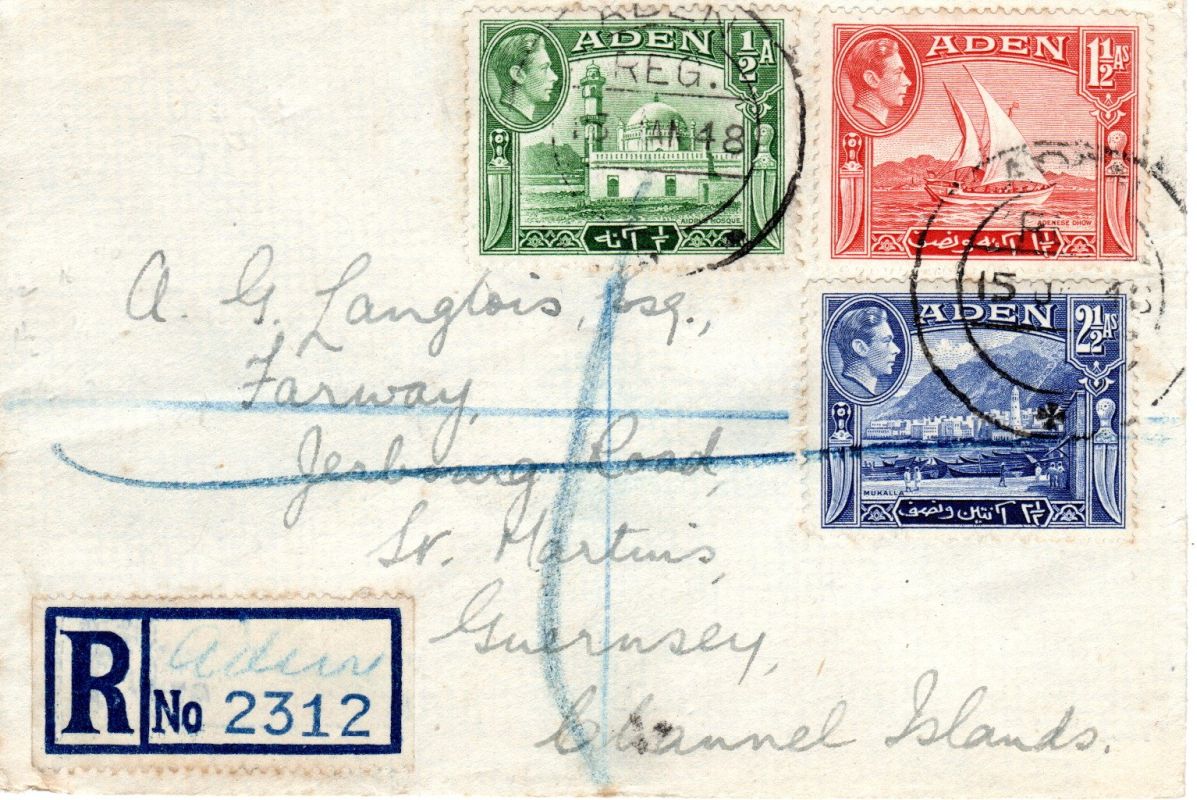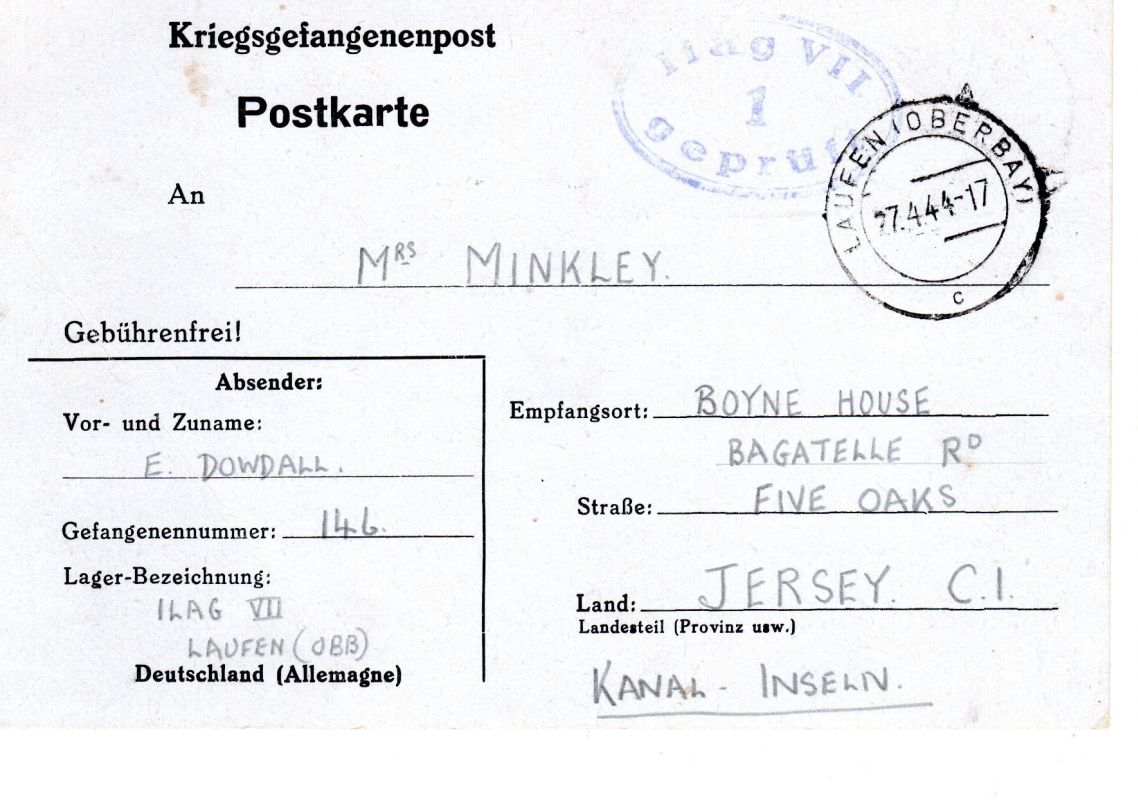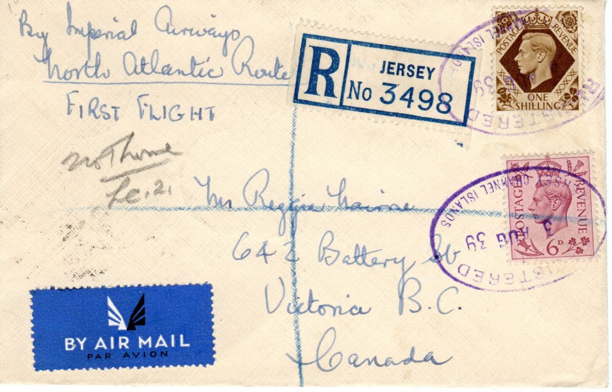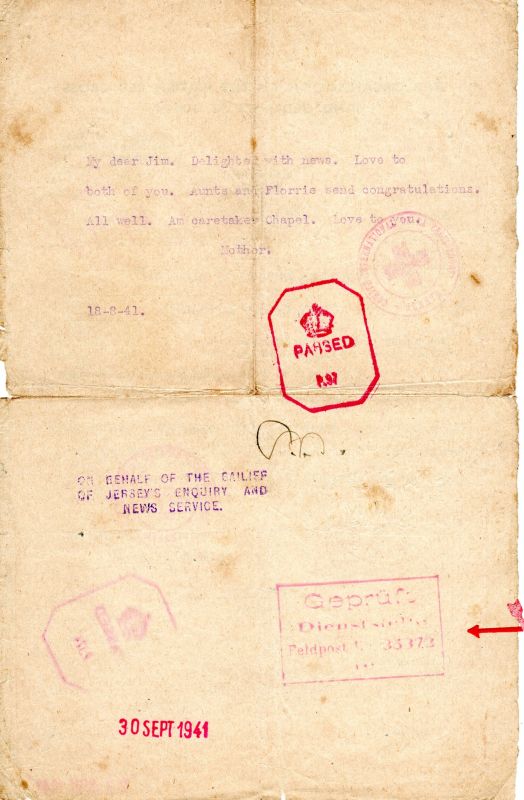 | 707 | JERSEY - July 1943 cover used twice. First time on 1 July with Jersey 1d PAID datestamp. Second usage with Jersey 1d Views and machine cancel for 18 July | 15.00 | | |