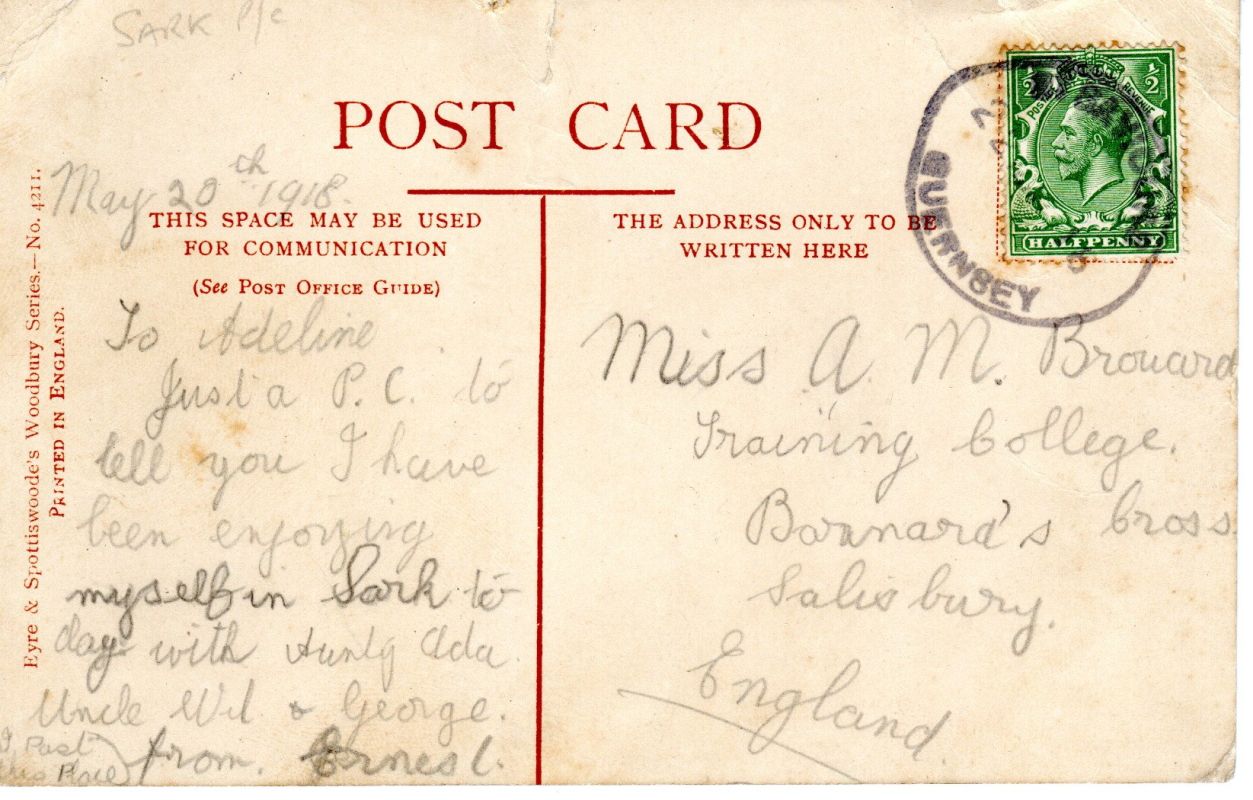 | 95 | SARK - 1908 postcard from Sark to Guernsey with a KEVII ½d cancelled by a Sark s / circle Code A | 5.00 | 9.00 | |