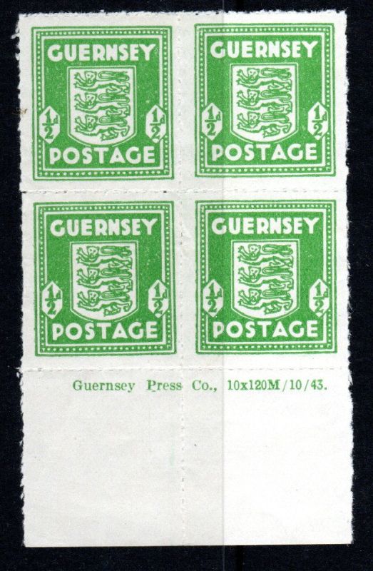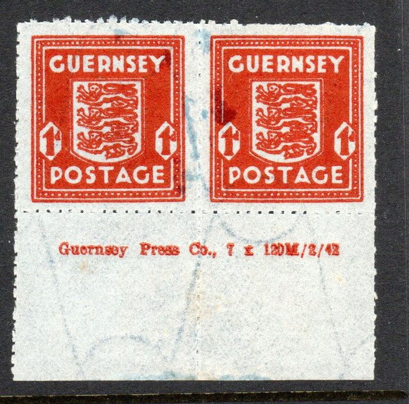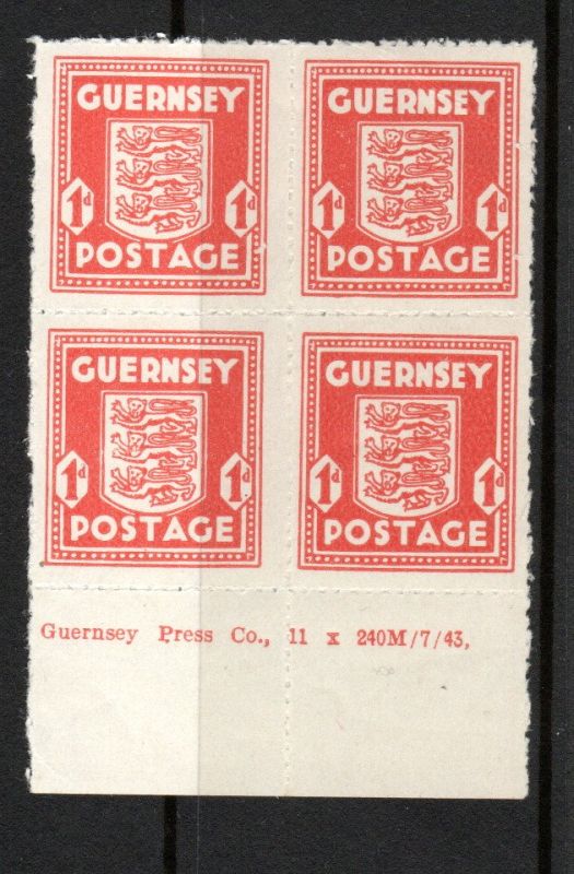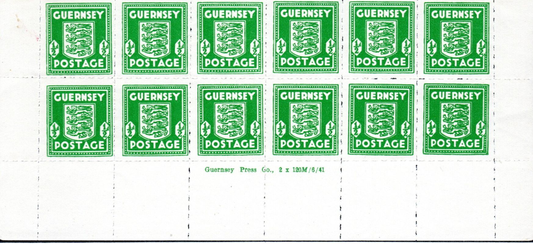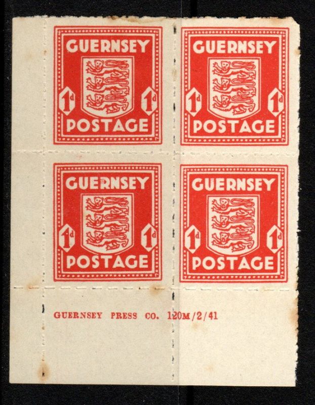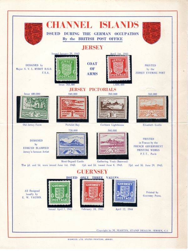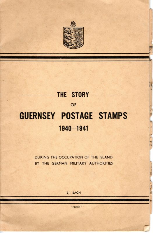 | 694 | GUERNSEY - "The Story of GUERNSEY POSTAGE STAMPS 1940 -1941". A 16 page booklet produced by Mr. F Martin and signed by him. It includes copies of press notices of the approval to use Bisects and the issuing of the ½d and 1d Arms stamps as well as a history of how the Arms stamps came into being. Inside there are the following covers: 2d Centenary and KGV 2d photogravure bisect covers; Guernsey ½d and 1d Arms FDCs and stamps; Jersey 1d Arms FDC and stamp. Also, a clipping from the Guernsey Weekly Press dated April 3, 1946 about a letter being sent to a Doctor in Guernsey via Hitler in Berlin! This is a very rare booklet. | 80.00 | 130.00 | |