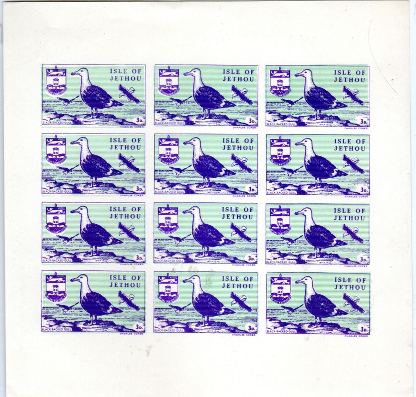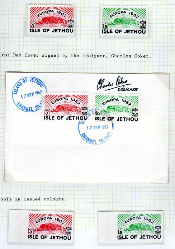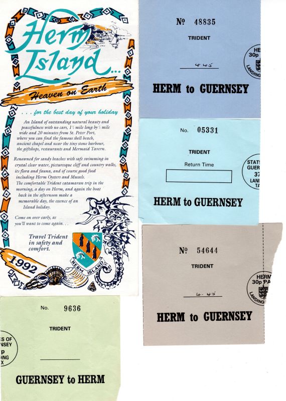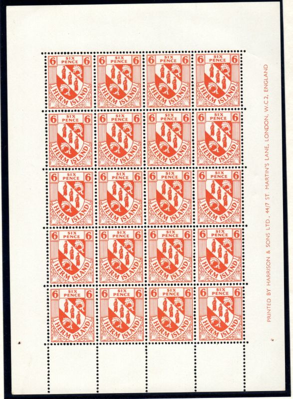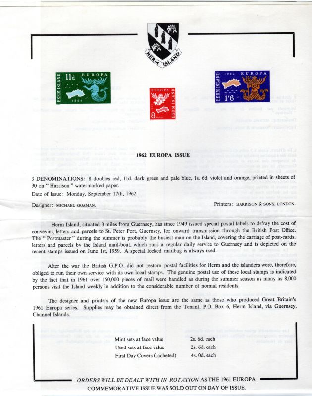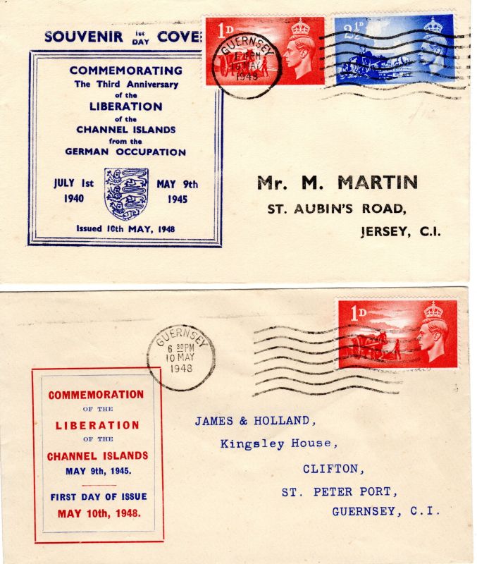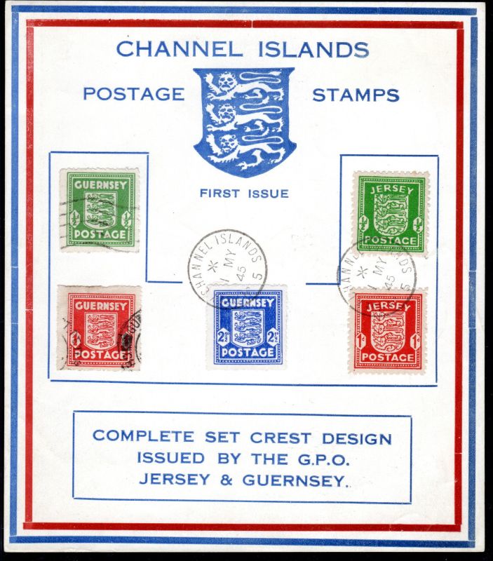 | 694 | GUERNSEY - "The Story of GUERNSEY POSTAGE STAMPS 1940 -1941". A 16 page booklet produced by Mr. F Martin and signed by him. It includes copies of press notices of the approval to use Bisects and the issuing of the ½d and 1d Arms stamps as well as a history of how the Arms stamps came into being. Inside there are the following covers: 2d Centenary and KGV 2d photogravure bisect covers; Guernsey ½d and 1d Arms FDCs and stamps; Jersey 1d Arms FDC and stamp. Also, a clipping from the Guernsey Weekly Press dated April 3, 1946 about a letter being sent to a Doctor in Guernsey via Hitler in Berlin! This is a very rare booklet. | 80.00 | 130.00 | |