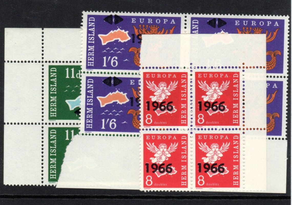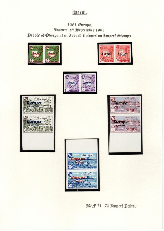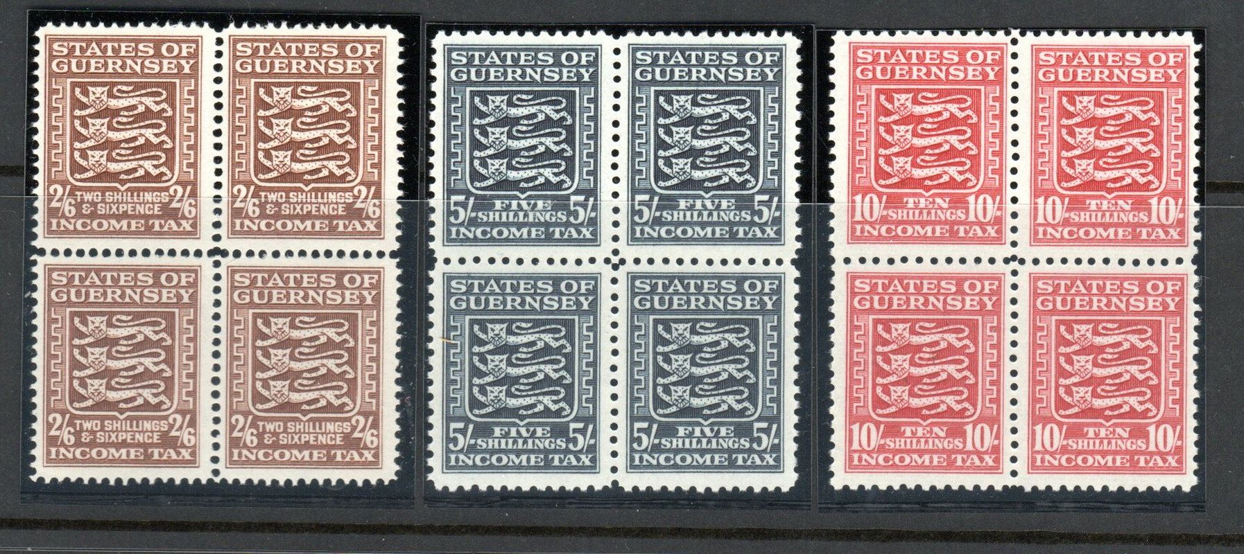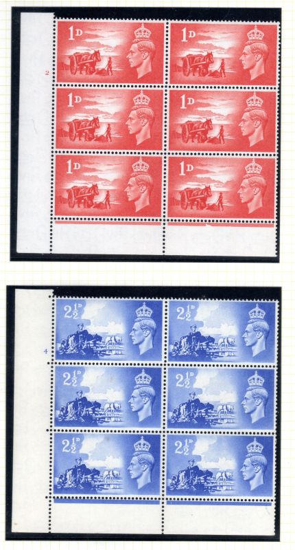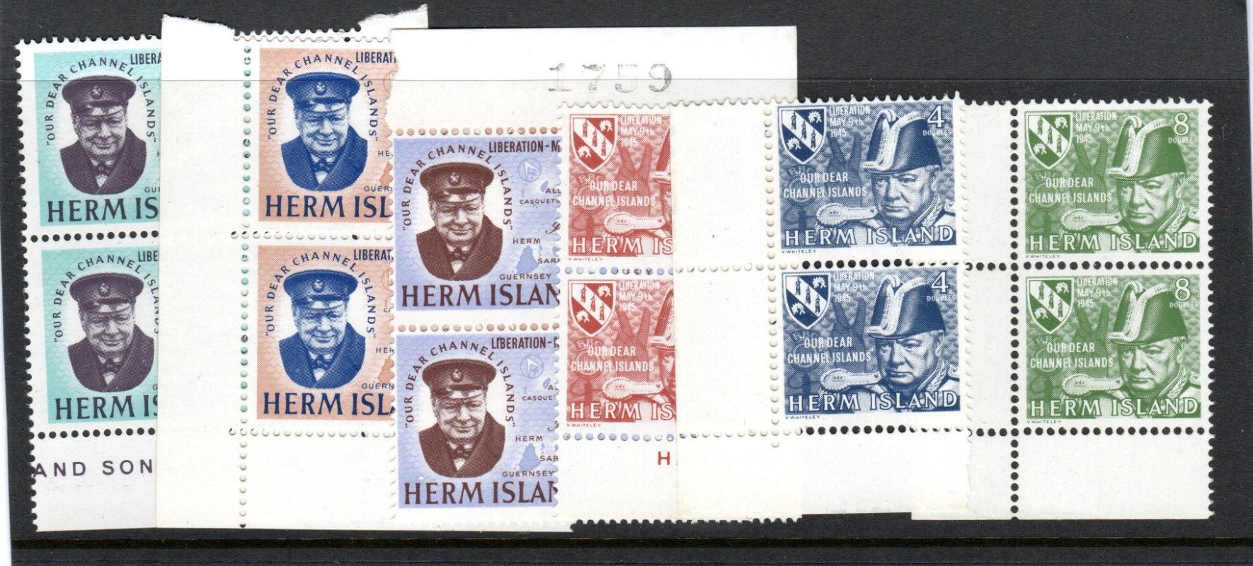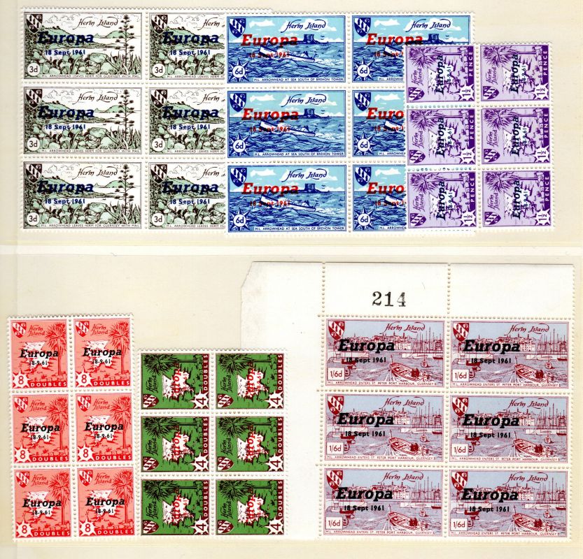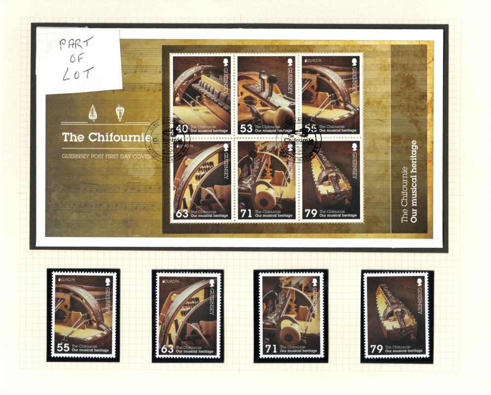 | 698 | GUERNSEY - Very nicely written up collection of 1974-79 Guernsey Militia defintives (16 pages) including gutter blocks of 4 to 10p (also second printing) and 20p - £1 in fine corner blocks of 4. Multi-value sheets strips for booklets also included. Also Guernsey 1980 coin set to £5. | 15.00 | 21.00 | |