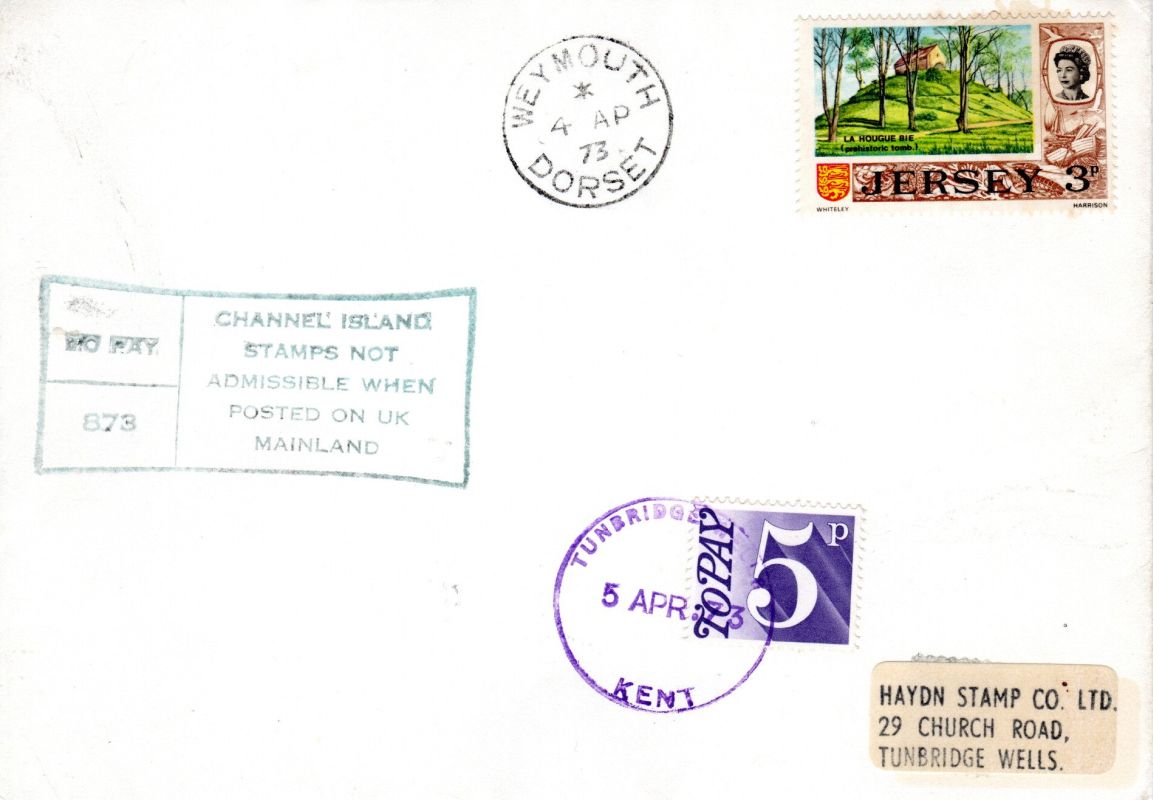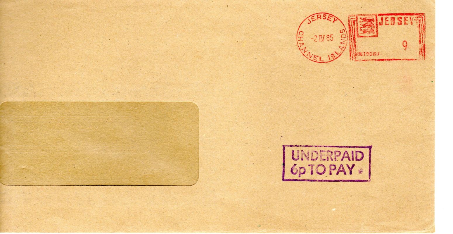 | 714 | JERSEY - 1985 Long window envelope with Jersey 9p meter cancel. With Jersey surcharge mark - 'UNDERPAID / 6P TO PAY' | 4.00 | | |