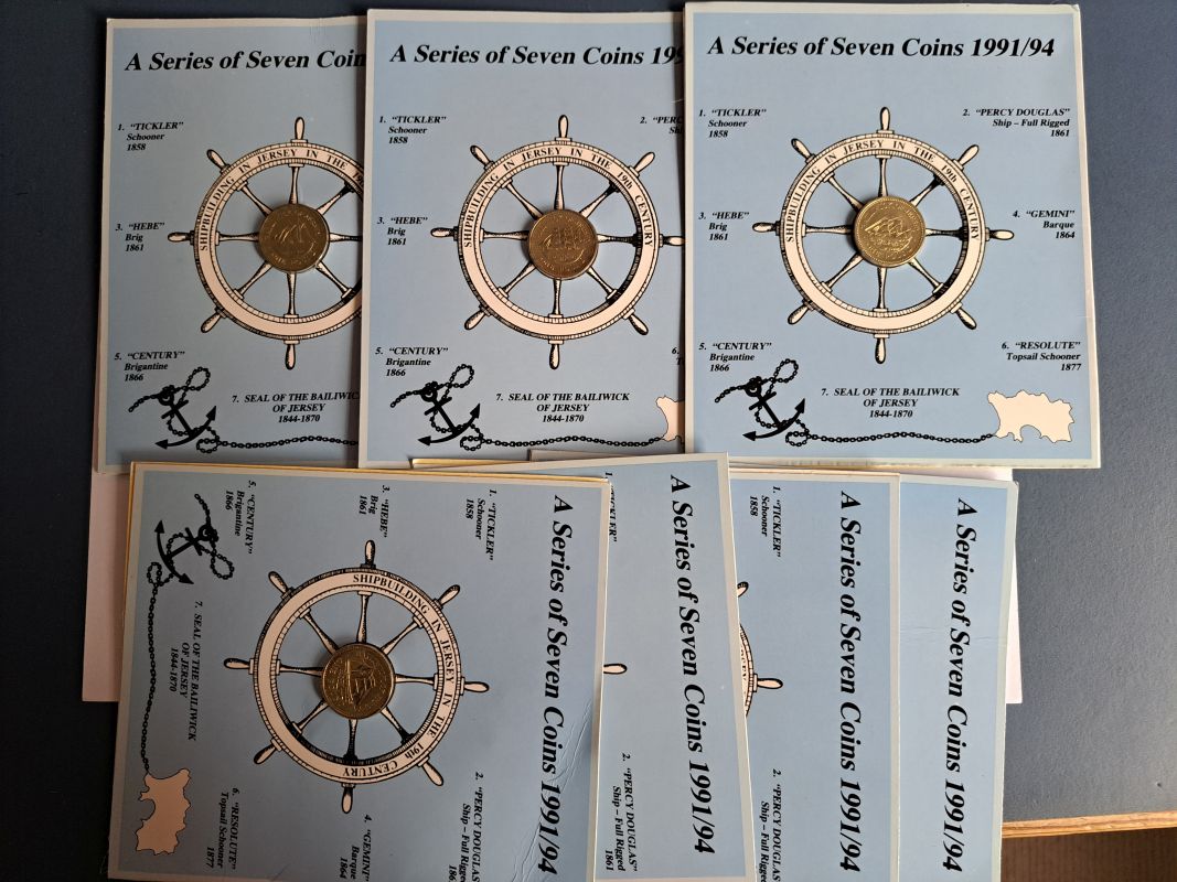 | 689 | JERSEY - 1991-94 - Complete set of 7 £1 coins of the old ships and the Seal of Jersey. All in their presentation packs. BU. | 10.00 | 70.00 | |