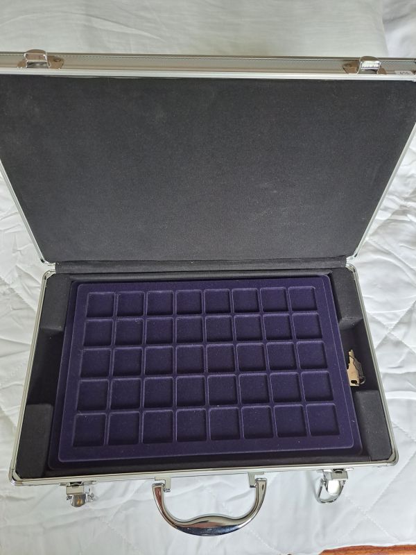 | 692 | Metal Coin case with 5 trays. Size: W 41cm, D 24.5 cm, H 9.5cm. 2 locks + keys. Retail cost £35 | 5.00 | 5.00 | |