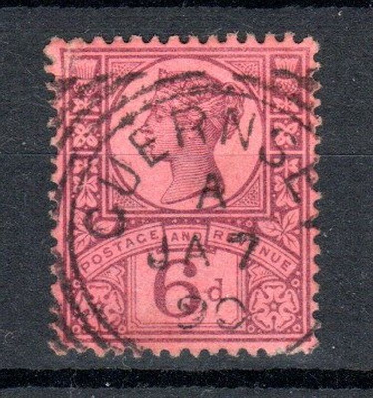 | 695 | GUERNSEY - GB 6d stamp (SG208) with clear squared circle cancel JA 7 90 (A). GC40 FU | 6.00 | 5.00 | |
