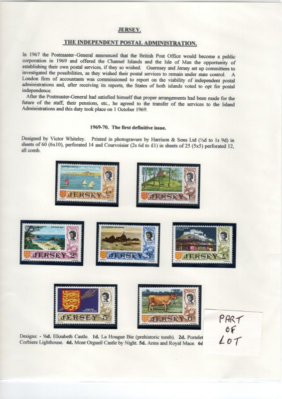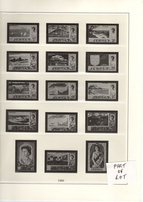 | 701 | JERSEY - Attractively typed-up collection of 1st Issue and 1st Decimal Issue with flaws and paper varieties and 1976 Parish Arms & Views set in singles with reprints and 36 booklet panes (believed not complete). 48 pages in 22 ring Pragnell album. | 25.00 | 25.00 | |