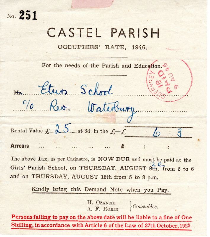| 711 | GUERNSEY - Aug 1946 Castel Parish rate demand with Guernsey 1d PAID handstamp | 12.00 | 9.50 | |
