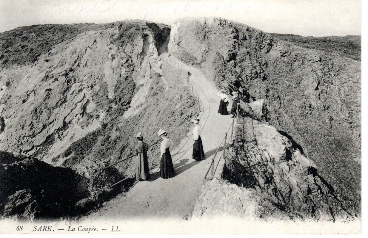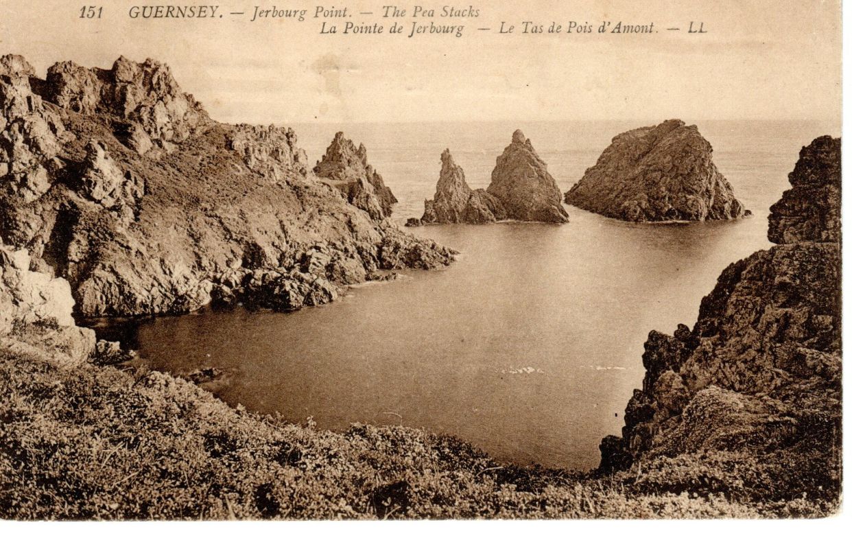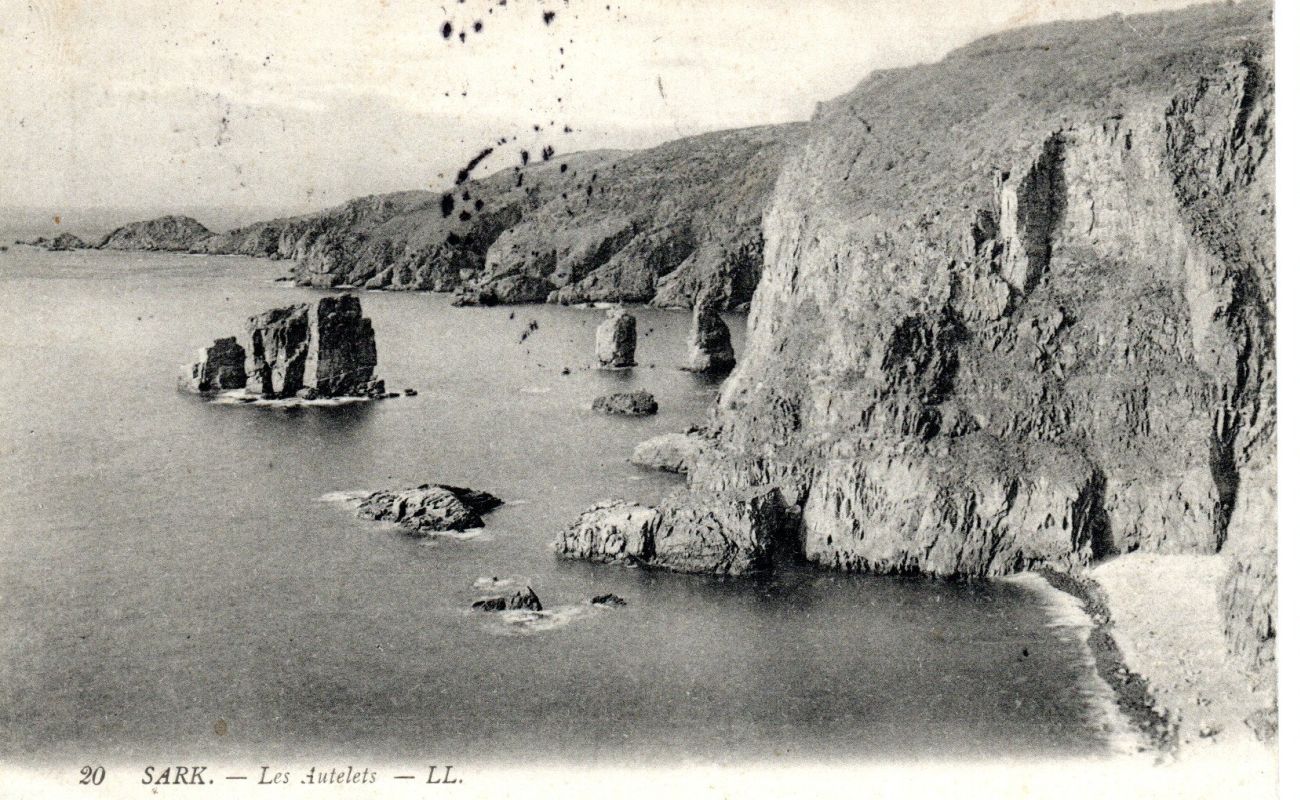 | 25 | SARK - LL card - 10 Gouliot Caves, looking out. Three cards. B/W. White back printed Levy et Neurdein Reunis. Unused. Two green backs one printed Levy Sons & Co. Paris. Unused, the other is used | 8.00 | |