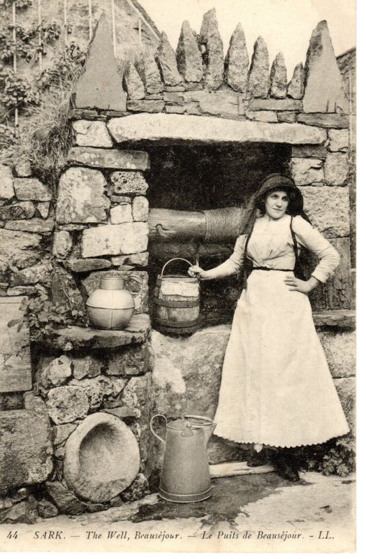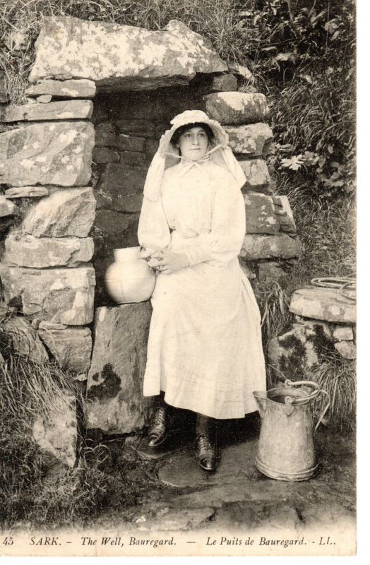 | 92 | SARK - LL card - 45 The Well, Beauregard (Woman with Guernsey Can). B/W. Green back. Written but not posted. | 25.00 | |